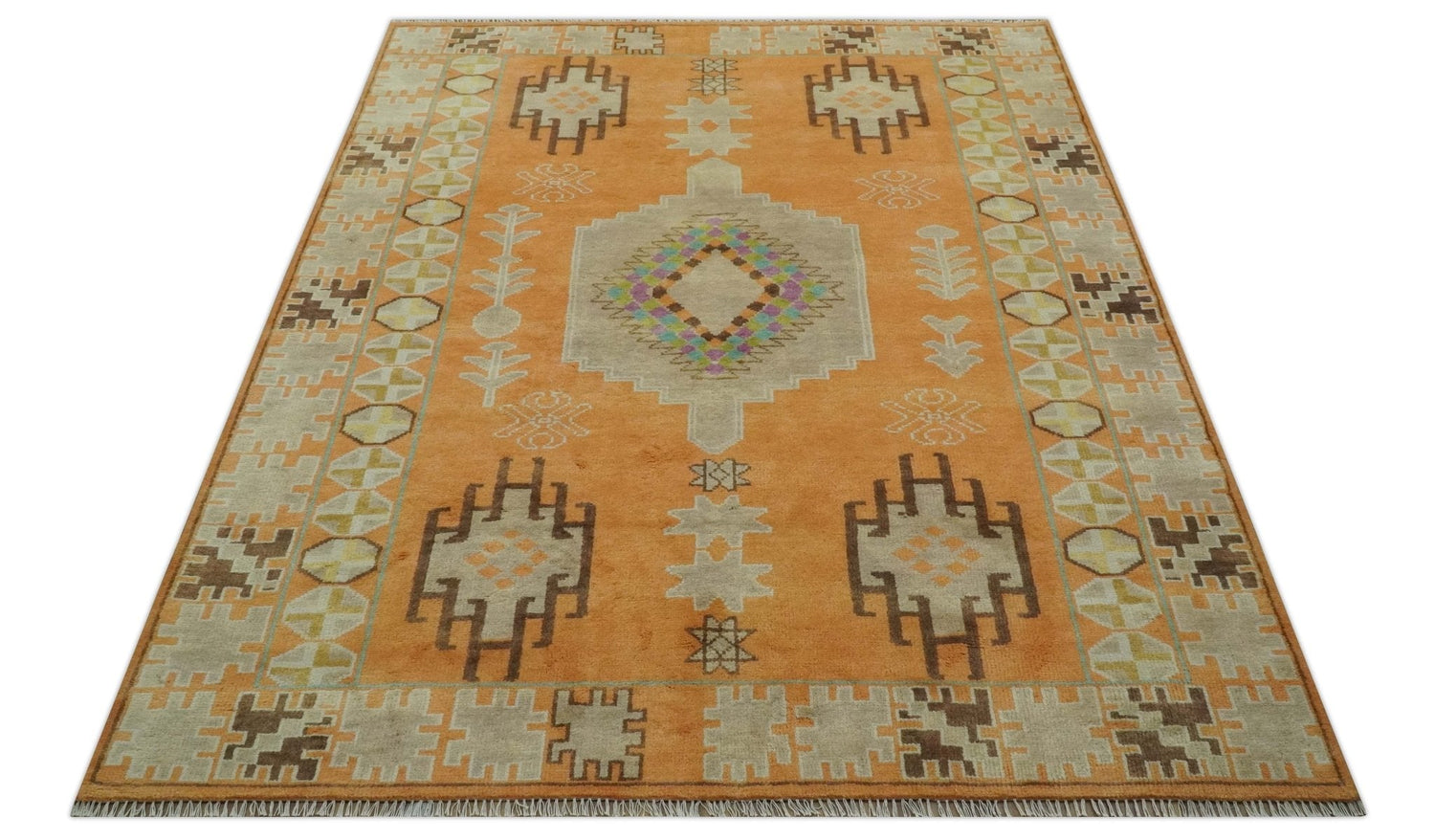 Hand Knotted Peach and Beige Traditional Southwestern Multi Size wool area rug