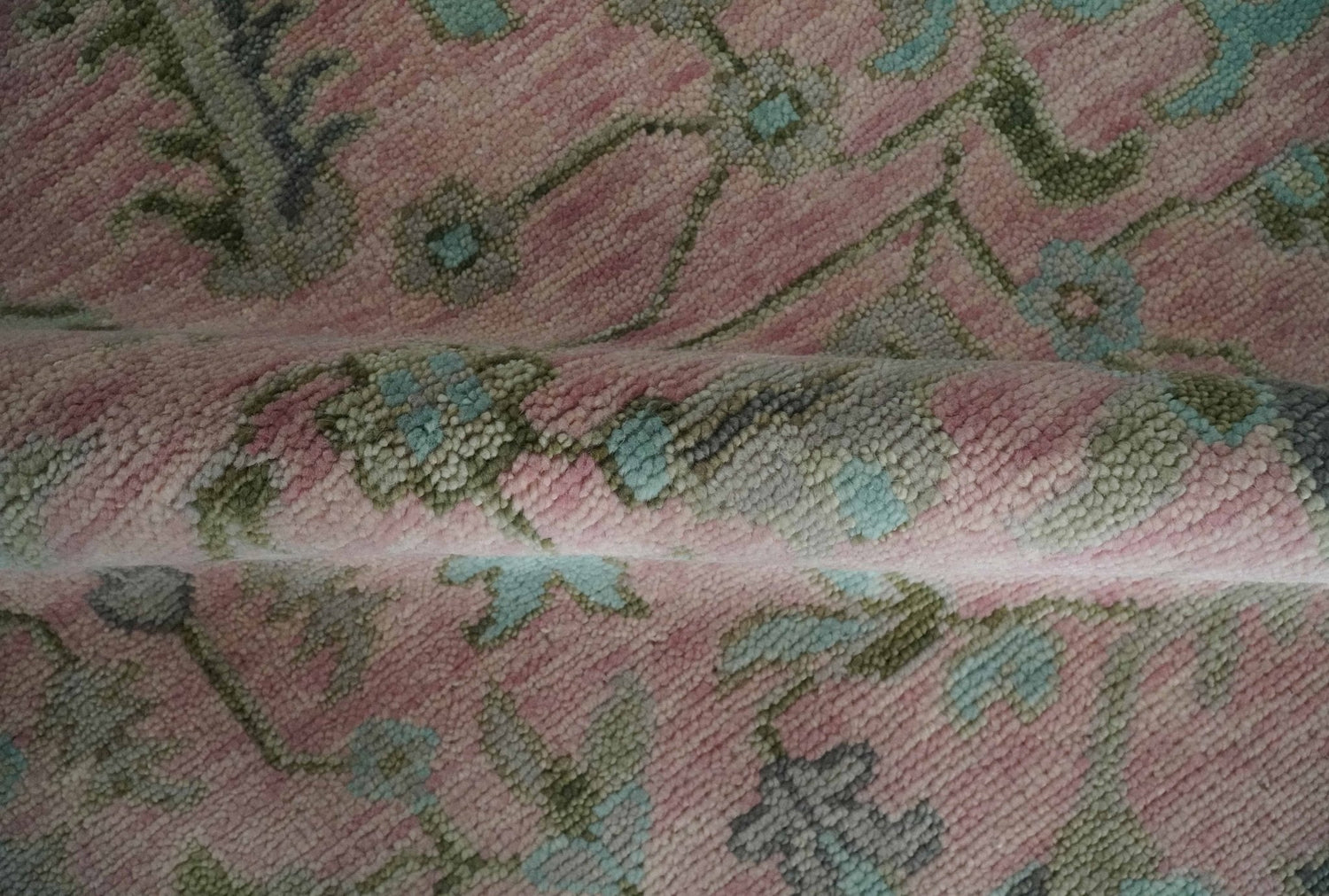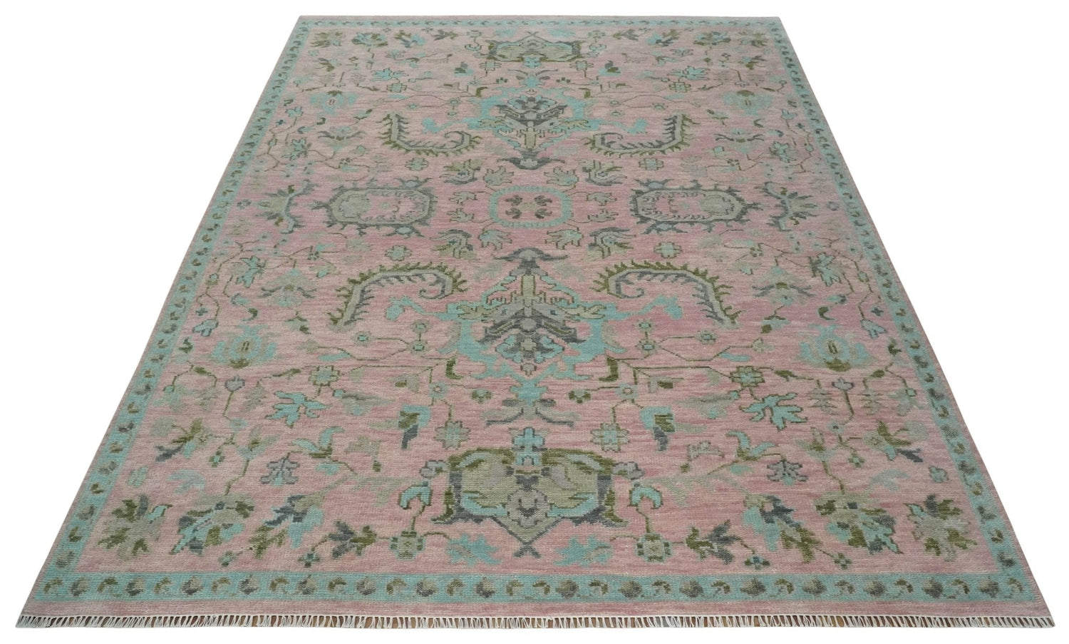 Hand Knotted Pink and Aqua Oriental Oushak Multi Size Traditional Wool Area Rug, Living Room and Bedroom Rug