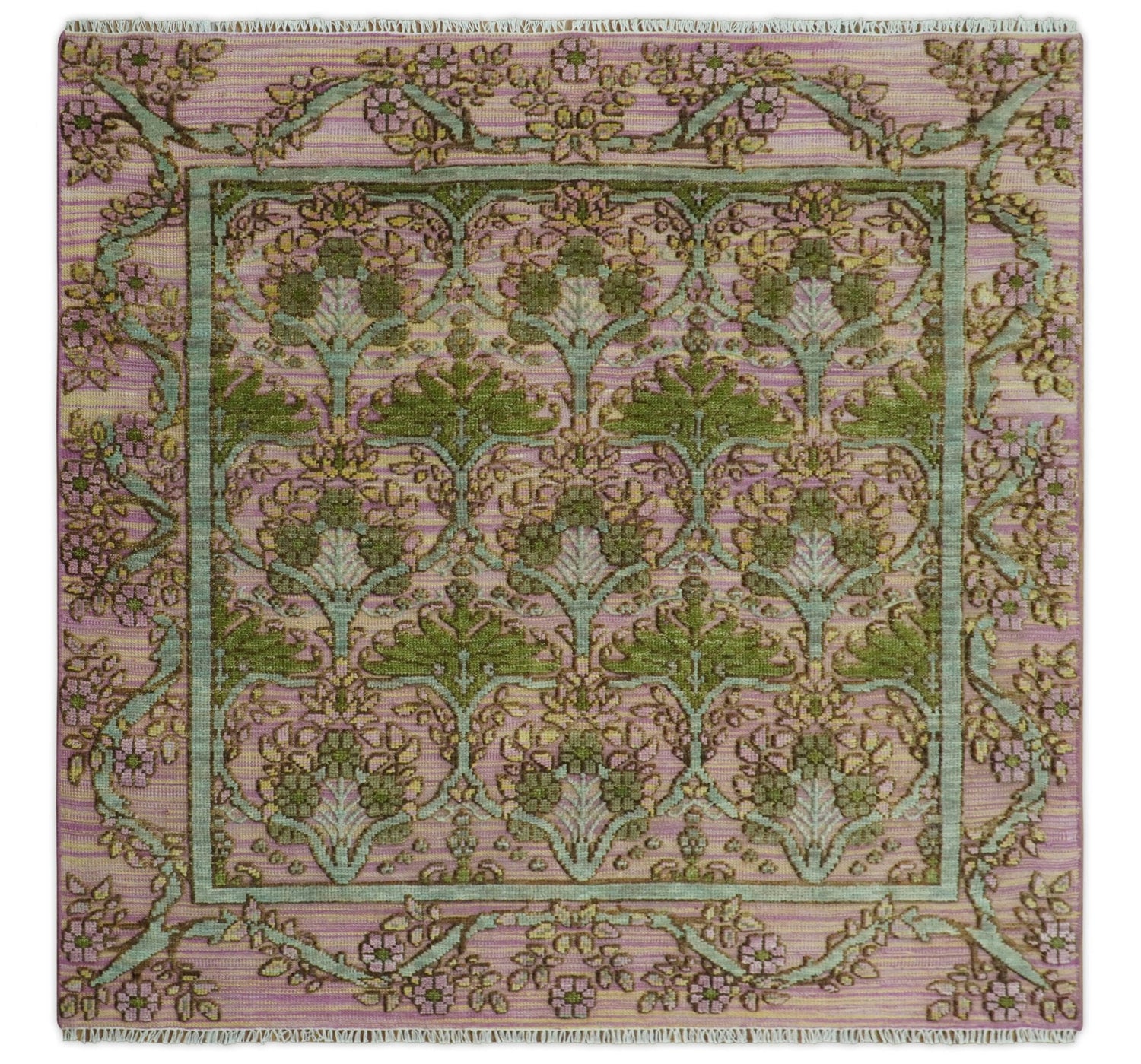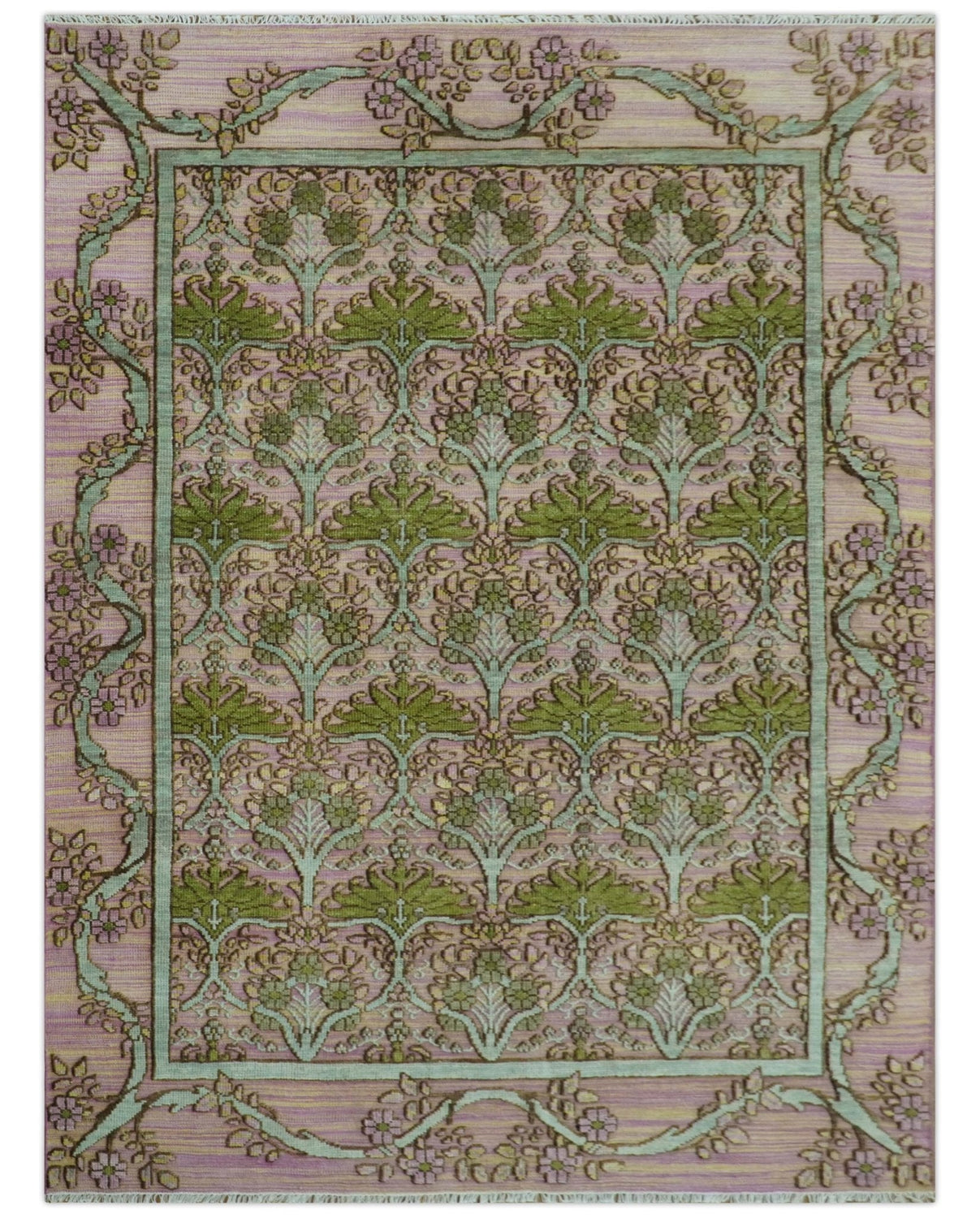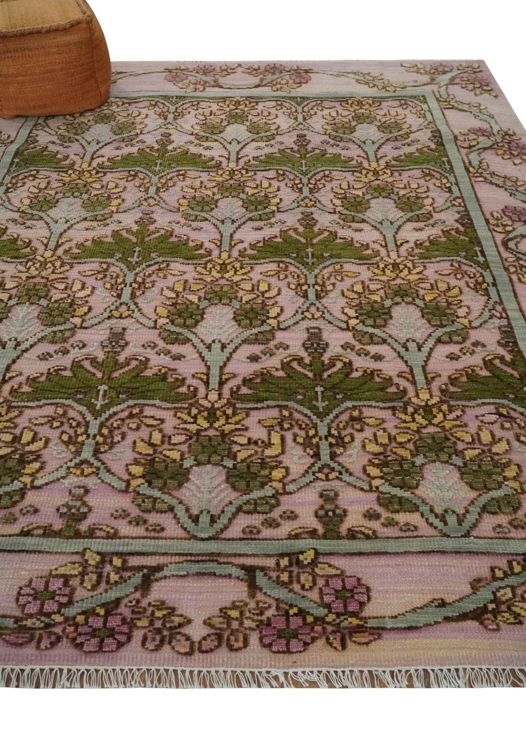 Hand Knotted Pink, Green and Beige Floral Traditional Antique Style Wool Area Rug