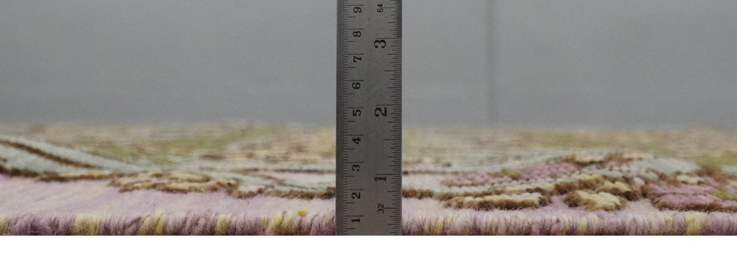 This luxurious rug showcases an intricate floral pattern with lush green vines and delicate blossoms on a soft lavender background. The border is adorned with harmonious floral motifs, artfully intertwining in muted teal and plum hues. The texture is exquisite, offering a plush feel that exudes warmth and elegance. Its detailed craftsmanship and sophisticated color palette make it a timeless piece, perfect for elevating the ambiance of any upscale home setting.