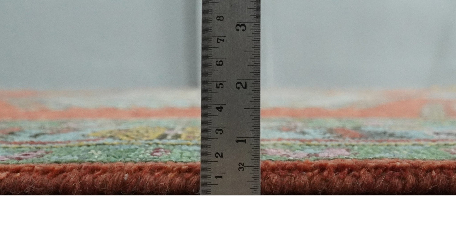 This Hand-Knotted Rug has been Made with Handspun Wool. The beautiful colors of the rug carry a legacy of the heirloom rug. The traditional design of the rug completes your space without making it look busy. Hand-Knotted rugs are durable and can last for decades if treated right.