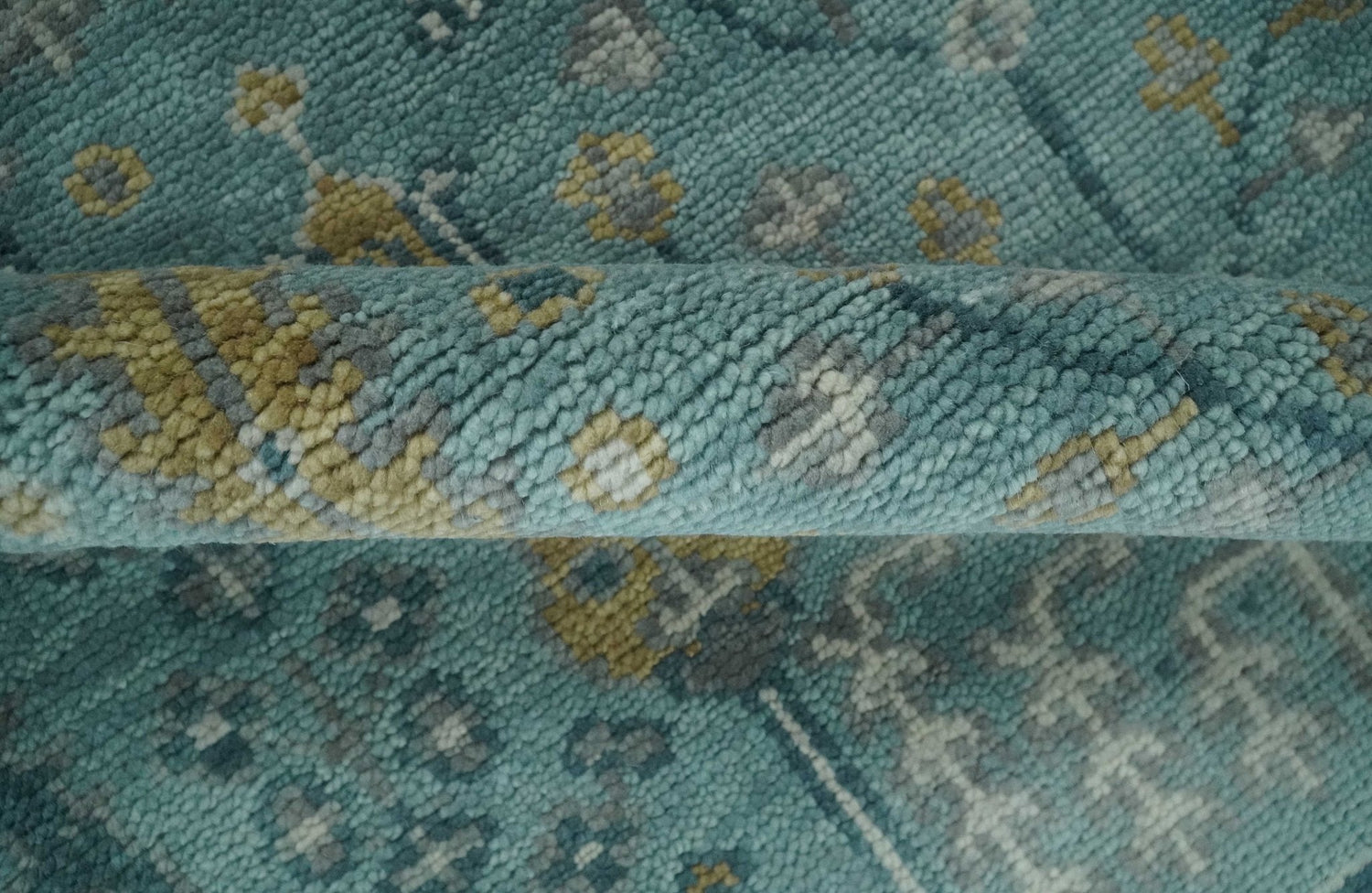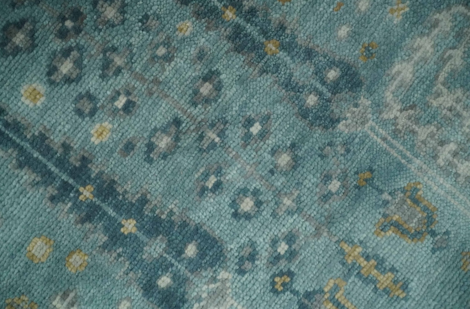 This exquisite hand-knotted rug is the perfect way to bring traditional Turkish charm into your home. It features a traditional pattern in Teal and beige wool in various sizes, creating a timeless vintage look. It's perfect for adding a touch of sophistication to any room.