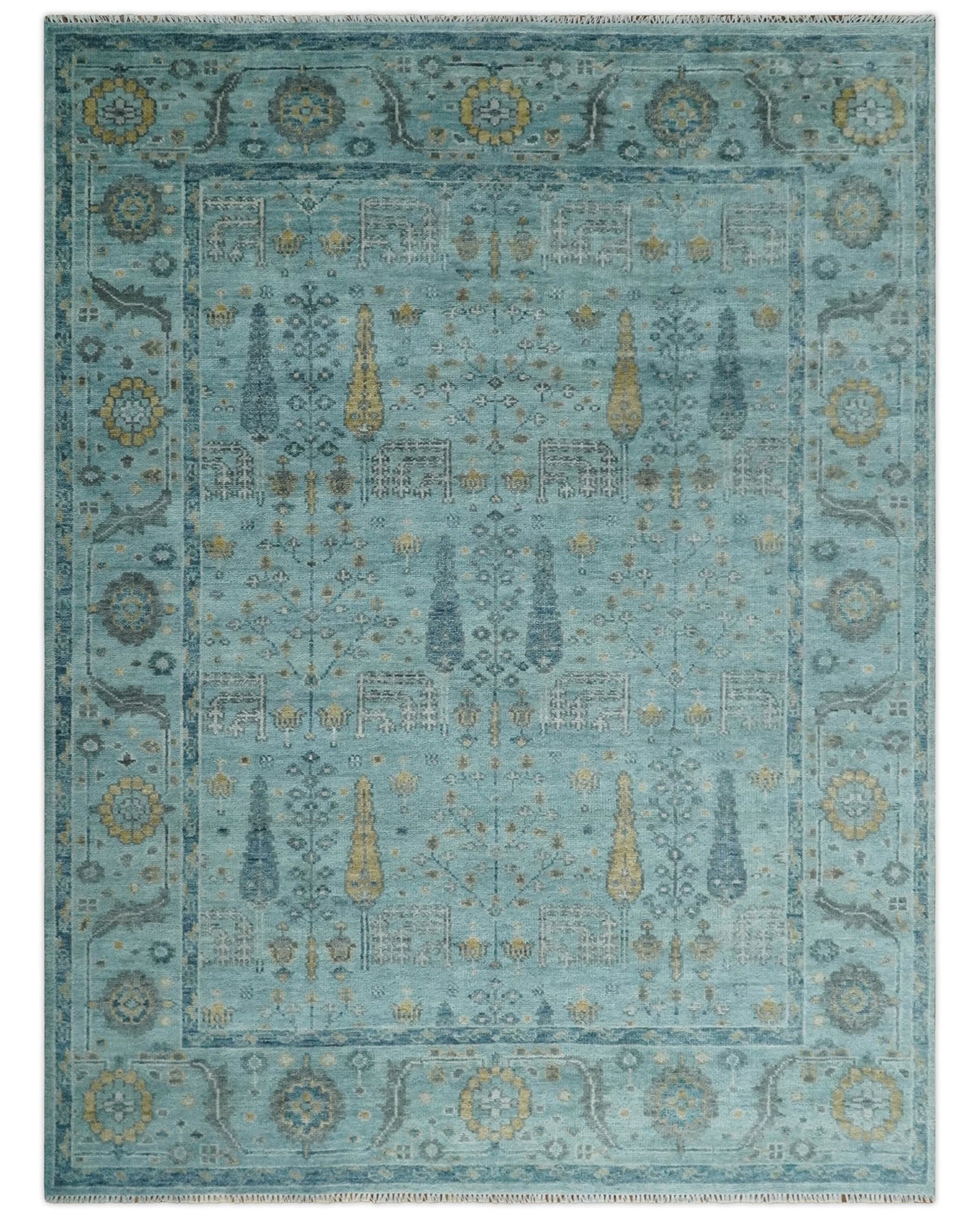 Hand Knotted Teal and Beige Multi Size Traditional Turkish Tree of Life Wool Rug