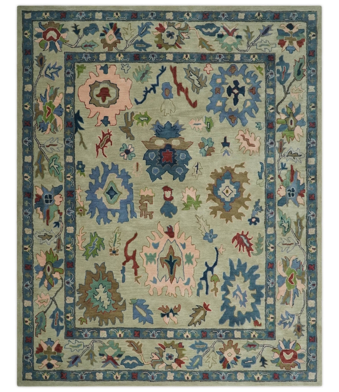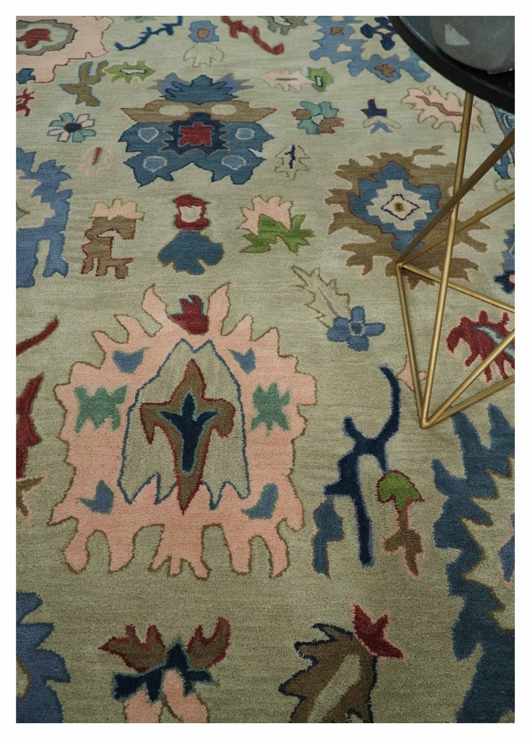 Hand Tufted Beige, Blue and Peach Traditional Oushak Custom Made wool Area Rug, Kids, Living Room and Bedroom Rug