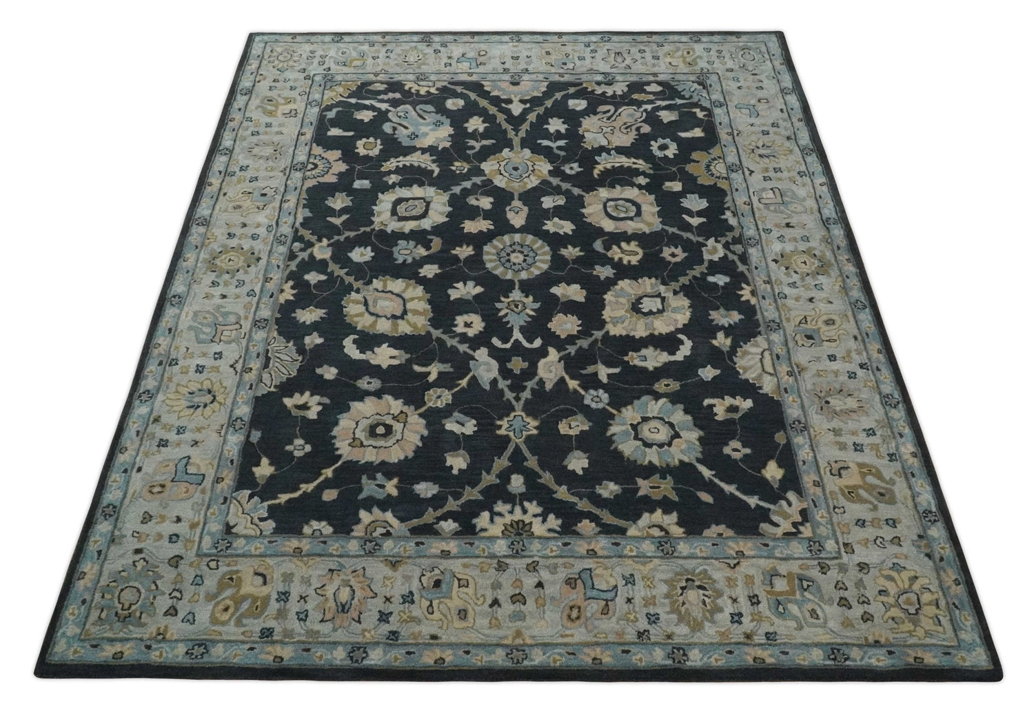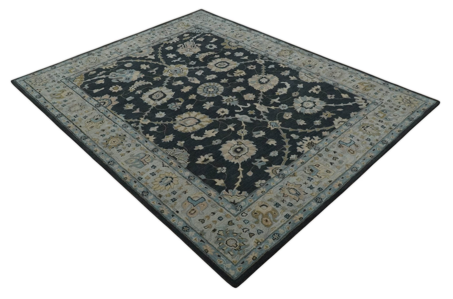 Hand Tufted Black and Silver Modern Turkish Oushak Multi size wool Area Rug, Kids, Living Room and Bedroom Rug