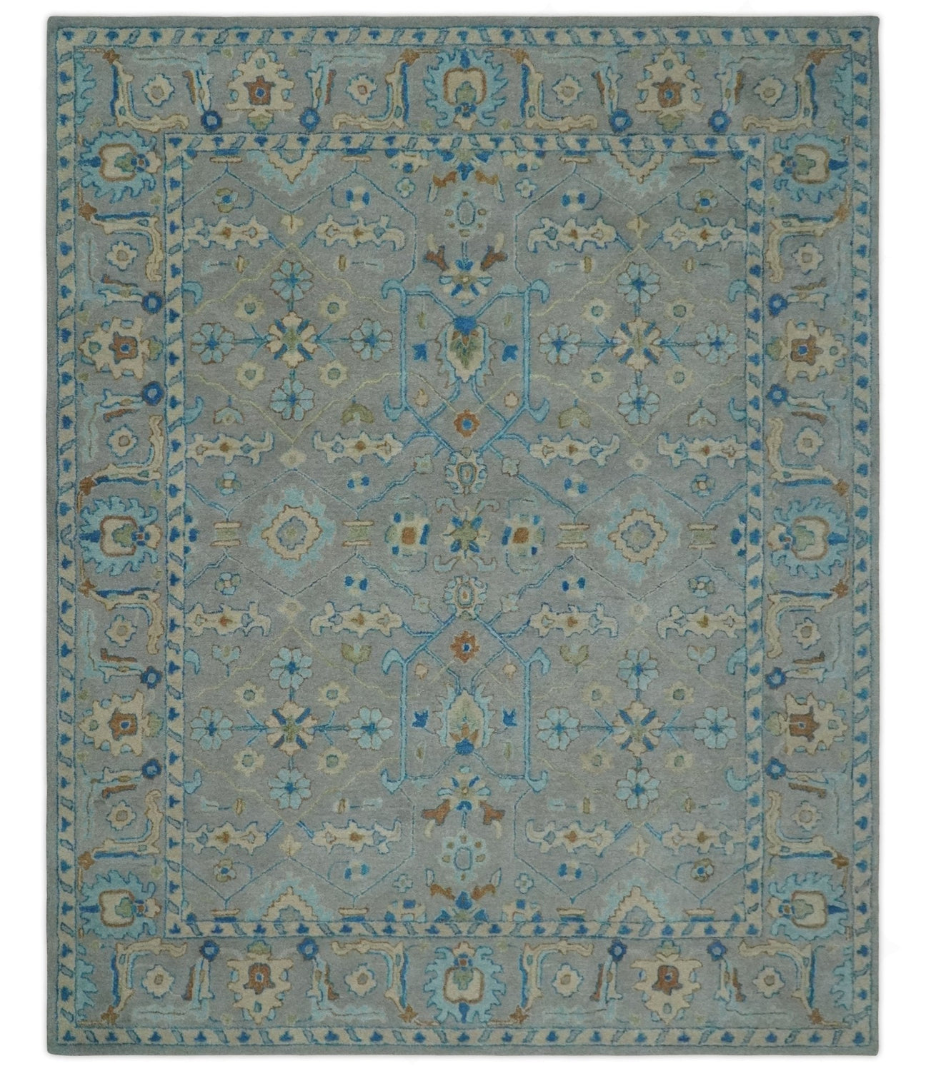 Hand Tufted Gray, Beige and Accent Blue Multi Size 8x10 Traditional Herati Design Wool Rug