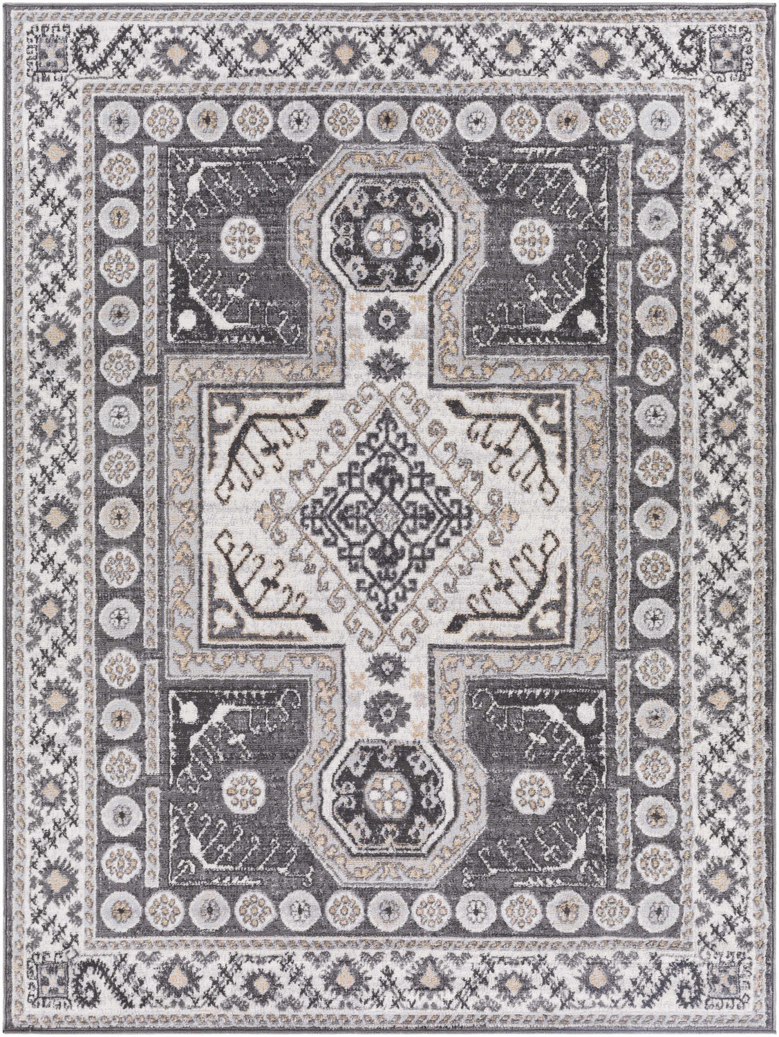 The Harrah Gray Cross Rug Collection showcases traditional inspired designs that exemplify timeless styles of elegance, comfort, and sophistication. The meticulously woven construction of these pieces boasts durability and will provide natural charm into your decor space. Made with Polypropylene in Turkey, and has Medium Pile.