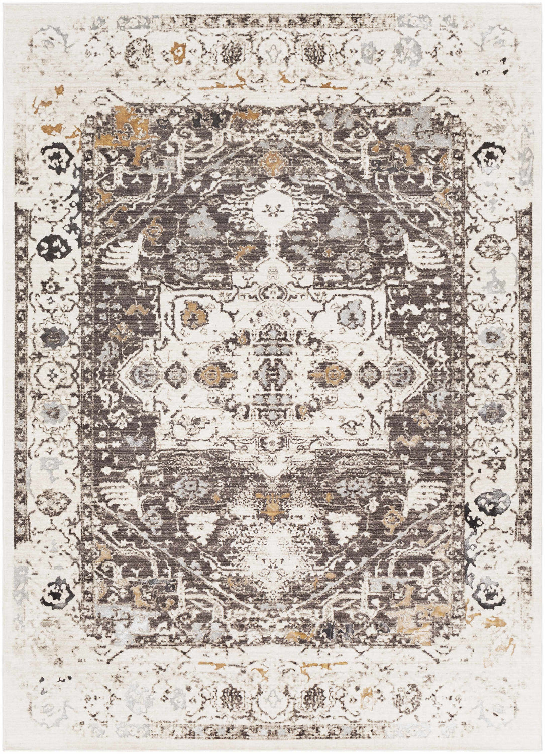 The Holicong Area Rug Collection showcases traditional inspired designs that exemplify timeless styles of elegance, comfort, and sophistication. The meticulously woven construction of these pieces boasts durability and will provide natural charm into your decor space. Made with Polyester in Turkey, and has Medium Pile.