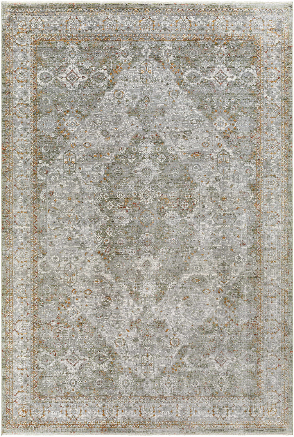 Margaret Damask Sage & Gray Washable Area Rug - Becki Owens x Livabliss