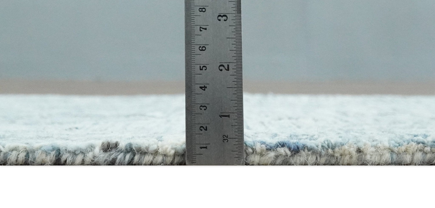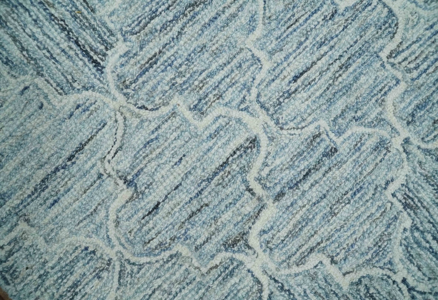 Ivory and Blue Modern Geometric Hand Tufted Multi Size Natural Wool Area Rug