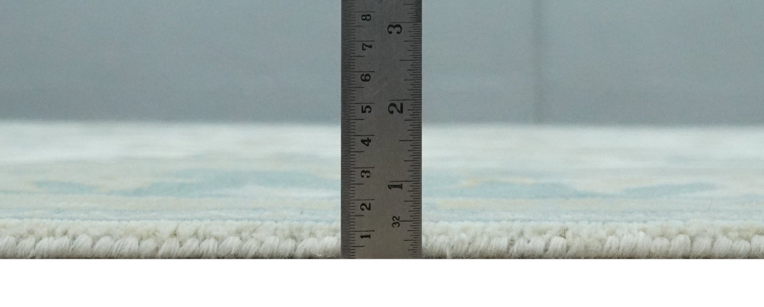 The Oriental Oushak design with a classic color combination of Ivory, Blue, and Beige gives it an antique look. The rug is made with fine Wool. It is a perfect pick to give your interior a classic feel.