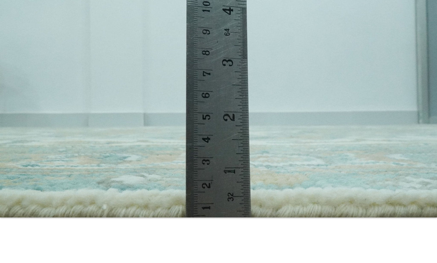 Expertly handcrafted with a traditional Heriz design, this wool area rug features a beautiful blend of ivory, olive, and teal. The intricate hand-knotted construction ensures durability and a luxurious feel. Custom-made and perfect for adding a touch of elegance to any room.