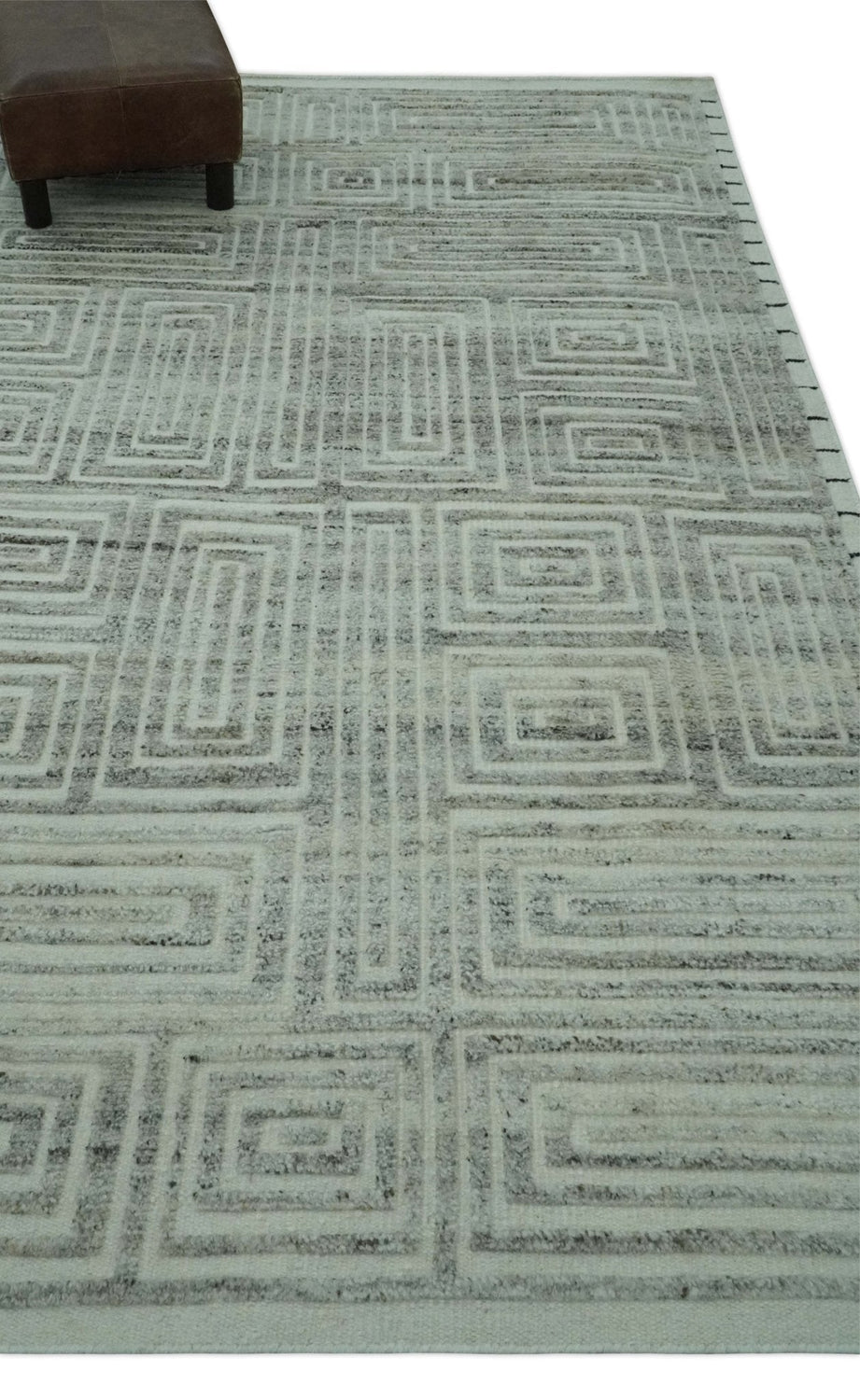 Ivory, Silver and Charcoal Modern Geometrical Puzzle Design hand knotted Custom Made wool Area Rug