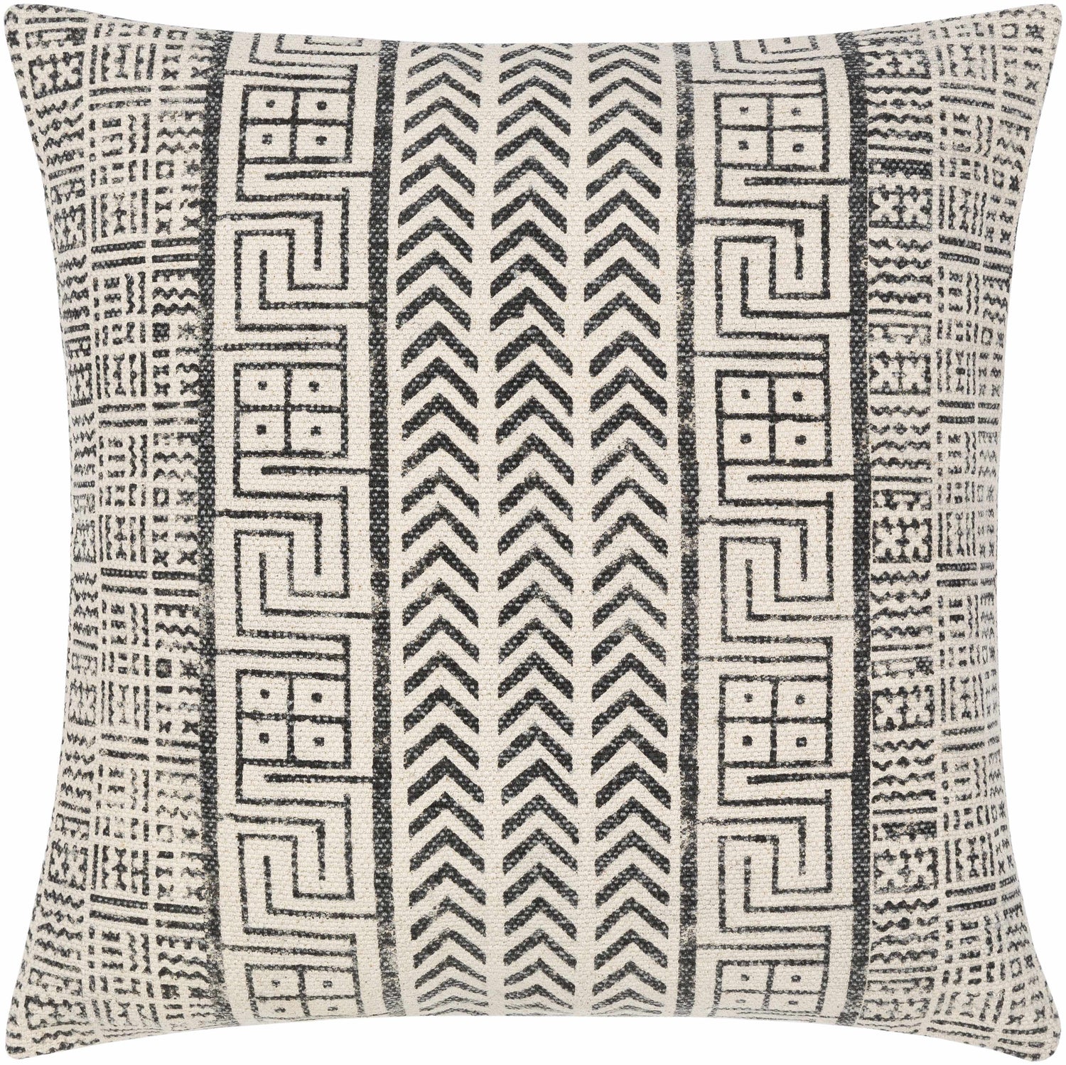Javira Black Beige Woven Ethnic Baklava Pattern Knitted Fringed Global Bohemian Cotton Waist Cushion - Clearance