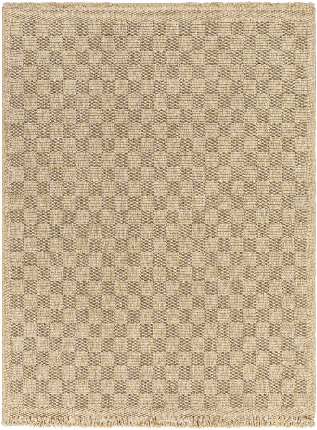 Step into the comfort and rustic charm of our Jurek Beige Checkered Area Rug Collection area rug, designed to transform your space with a touch of Farmhouse Cottage style. This machine woven masterpiece, originating from Turkey, is crafted from durable Polypropylene, perfect for high traffic areas and can brave the outdoors too. An added fringe gives it a unique personality that's sure to capture attention. The rug features no pile ensuring minimal shedding and easy maintenance - just hose off with water and hang to dry! We recommend its use with a rug pad for optimal performance. Add this beauty to your home decor for an instant infusion of warmth and elegance!