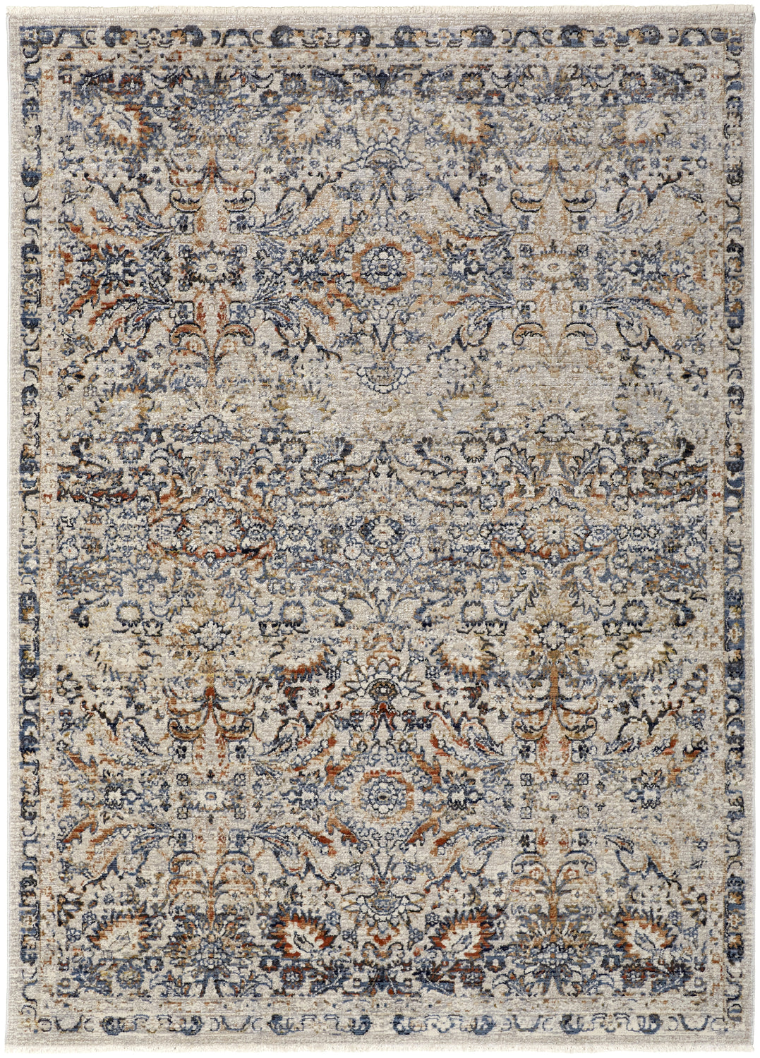 Feizy Kaia Transitional Damask - Tan/Blue/Orange Area Rug