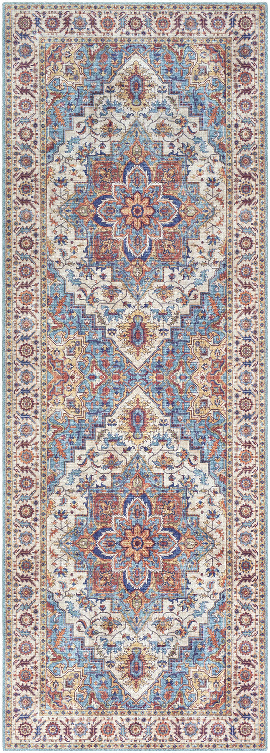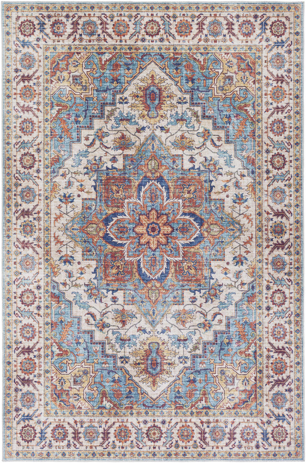 Introducing the Kapaa Traditional Area Rug, an updated traditional masterpiece that infuses timeless elegance into any space. This high-traffic friendly rug is made of durable polyester and constructed through a meticulous machine-woven process, making it a reliable addition to your home. Its no-pile feature ensures easy maintenance and longevity, while its unique design adds a touch of sophistication to your decor. To enhance its lifespan and provide added stability, we recommend using this rug with a rug pad. The Kapaa Traditional Area Rug is also easy to maintain - simply spot clean with mild detergent and watch it retain its charm for years!