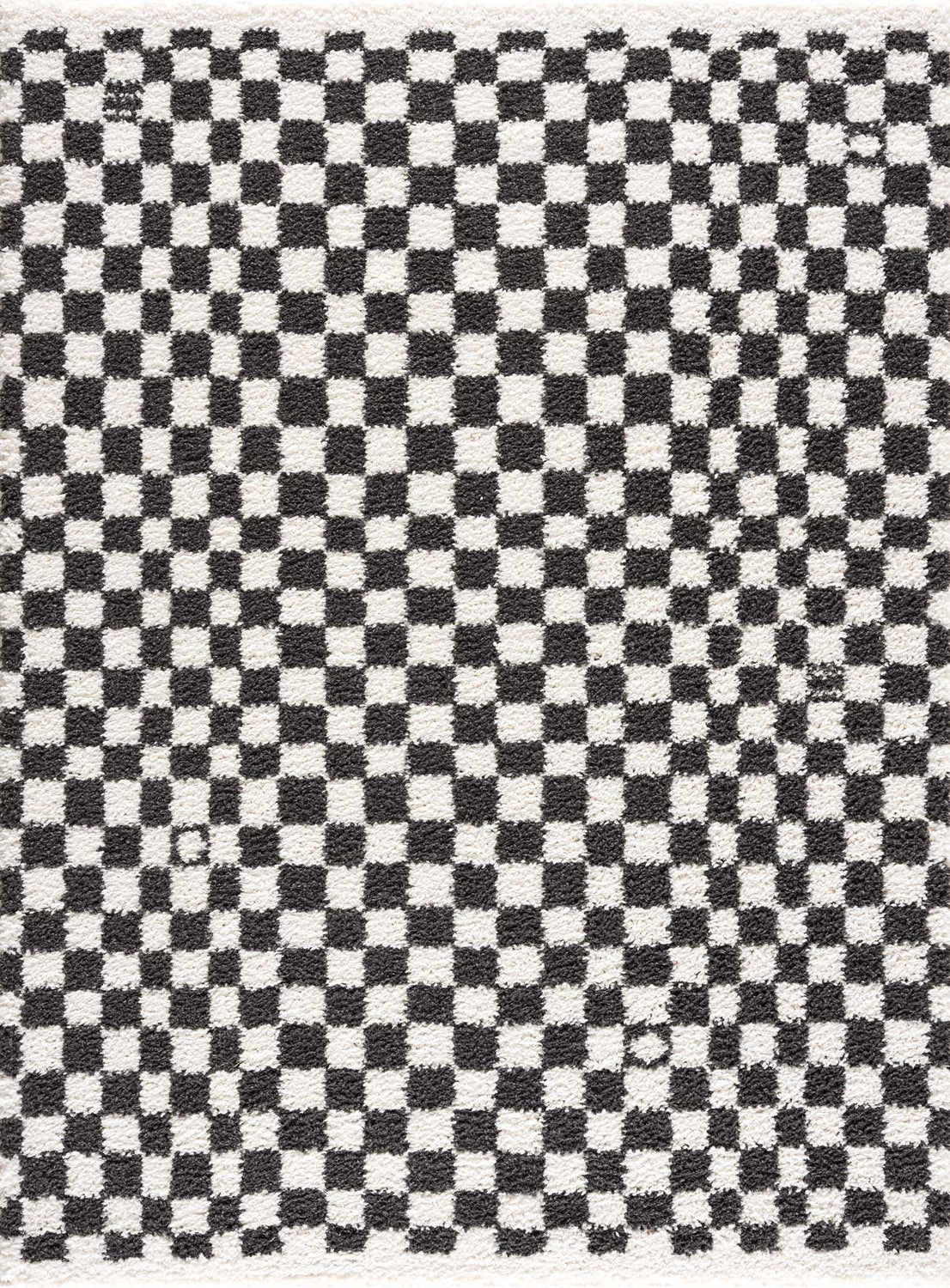 The Kieu Black & White Checkered Shag Area Rug is the perfect way to add a touch of elegance and sophistication to any room. Crafted with a plush pile and machine woven in Turkey, this area rug will bring comfort and warmth to your space. The polyester material is durable and easy to care for - simply spot clean with mild detergent when needed. With its beautiful style, this area rug will be sure to be an eye-catching piece in your home for years to come. For best results, we recommend using a rug pad beneath the rug.