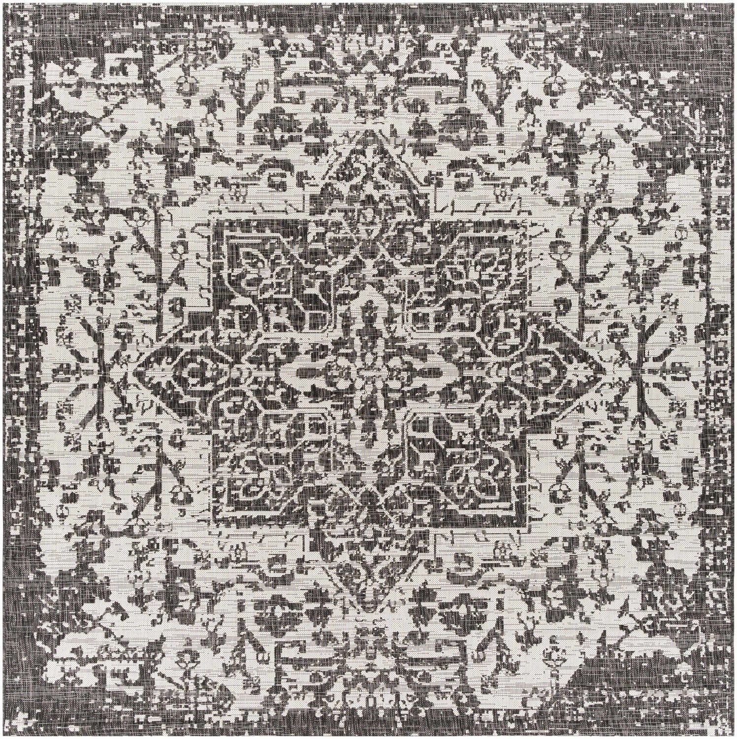 This elegant Charcoal Kilmacolm Indoor & Outdoor Area Rug will lend a traditional touch to your outdoor space. Crafted of durable polypropylene, this no-pile rug is designed for high traffic areas and is suitable for outdoor use. It features a machine woven construction and is made in Turkey. To ensure maximum longevity, we recommend using a rug pad underneath the rug (not included). For easy care, simply hose off with water and hang to dry.
