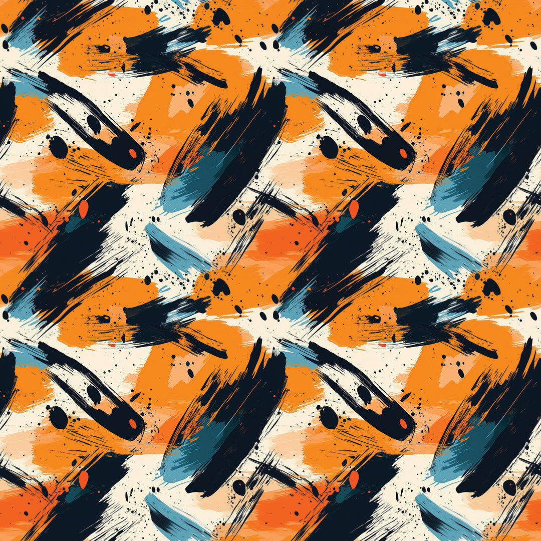 Ignite your space with a burst of dynamic energy, captured in bold, gestural brushstrokes. The high-contrast palette of vibrant orange, deep navy, and cool teal creates a confident and artistic statement perfect for a modern living room or creative studio.