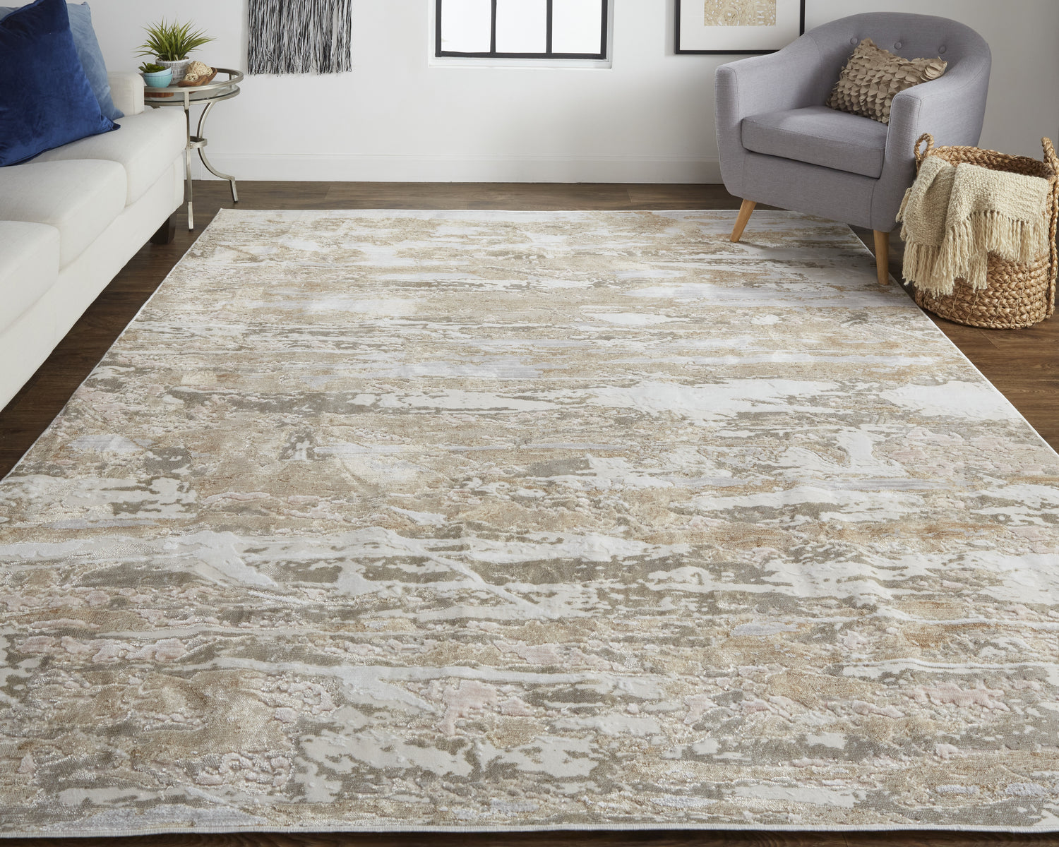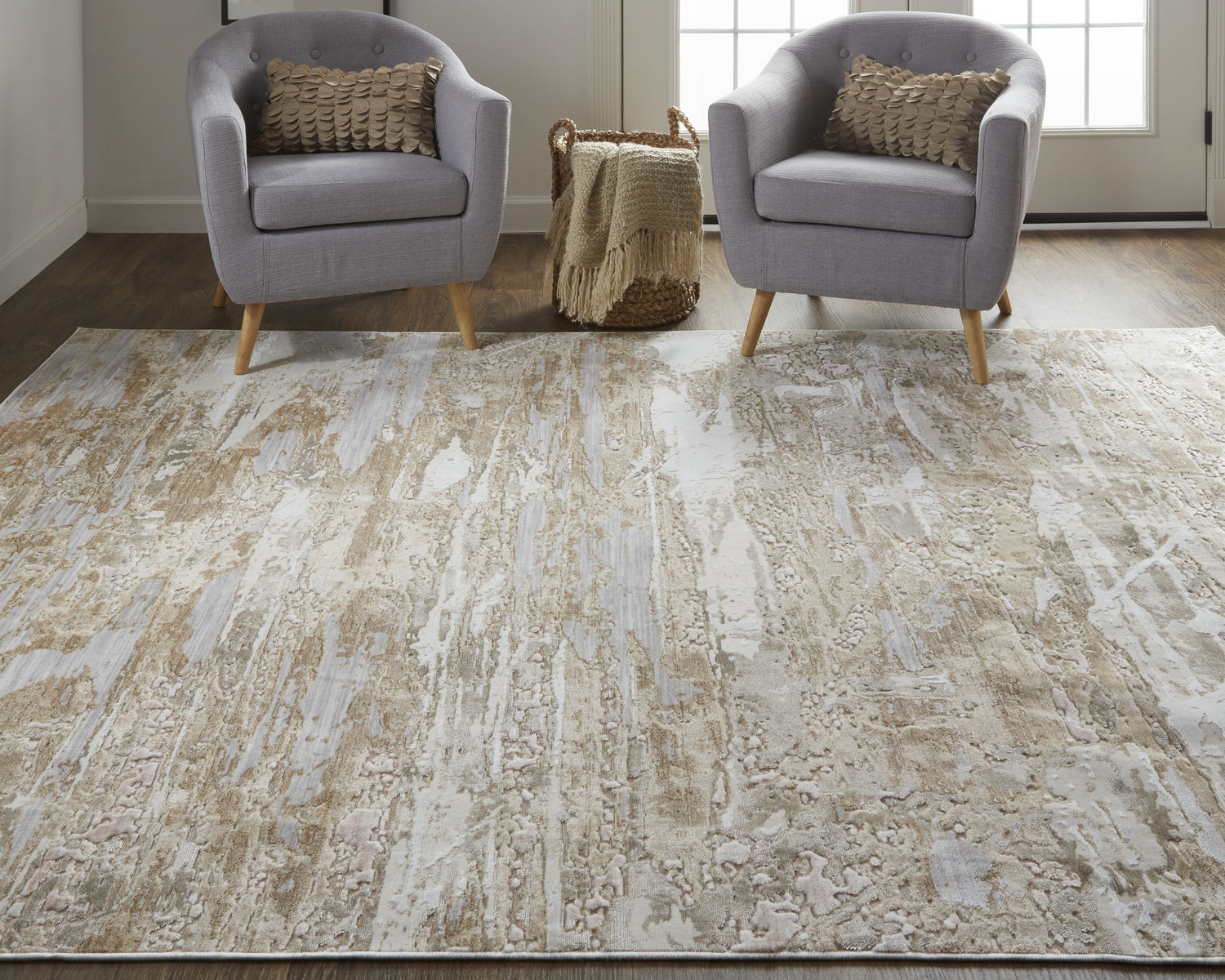 Feizy Laina Transitional Abstract - Tan/Ivory/Pink Area Rug