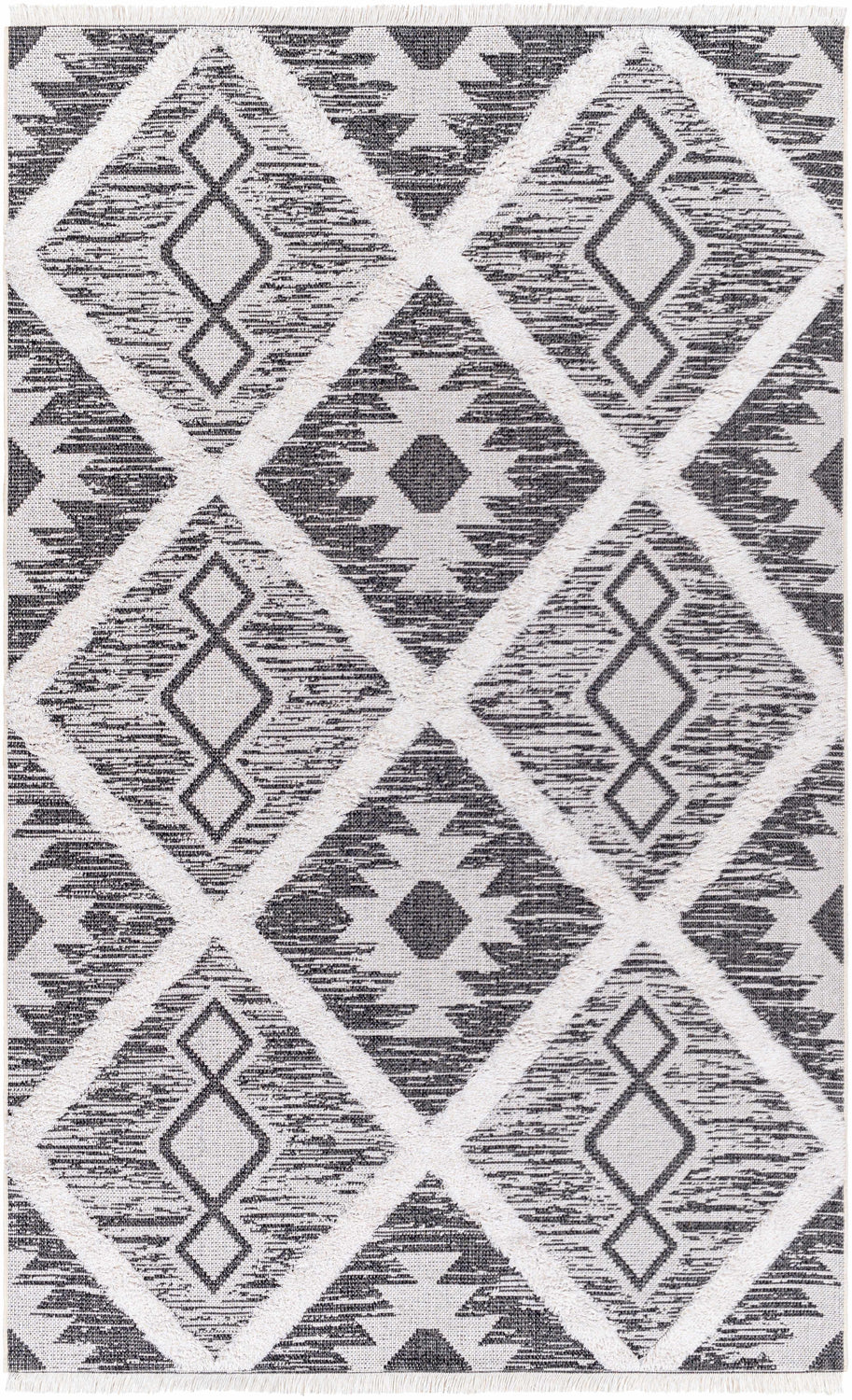 This beautiful Lata Area Rug is the perfect choice to add a rustic touch to any room. It has a high pile construction, making it soft and comfortable, while its machine woven construction ensures long-lasting durability. The fringe detail adds an extra layer of charm to the piece, making it the ideal choice for any home. This area rug is made in Turkey from cotton fibers for quality you can trust. We recommend using with a rug pad (not included) for added stability and comfort. Cleaning should only be done professionally.