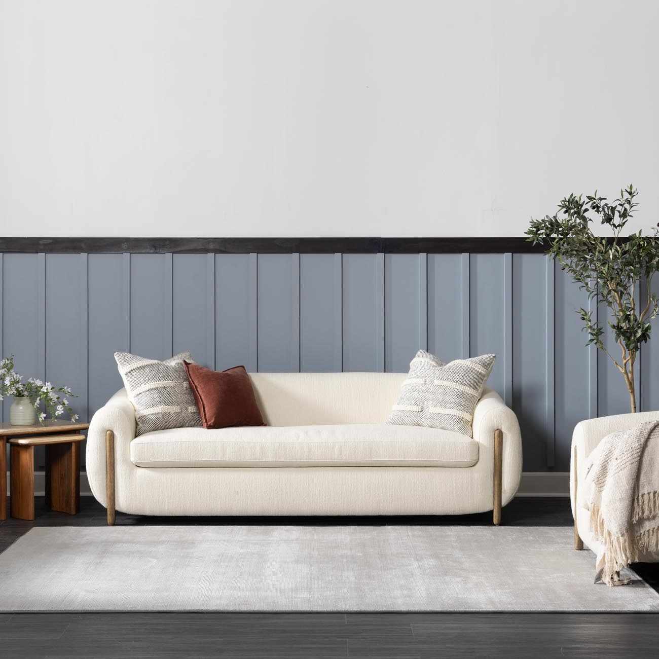 When selecting a living room rug, choose one that anchors your furniture by either placing all the legs on the rug or just the front legs, which helps define the seating area and enhances the room’s acoustics.