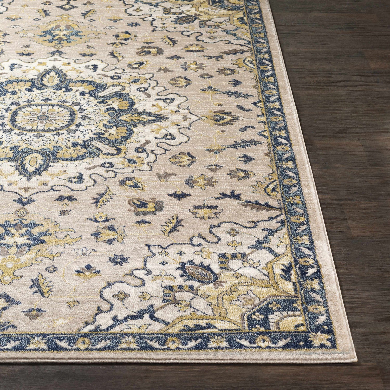 The Leicester Area Rug Collection showcases traditional inspired designs that exemplify timeless styles of elegance, comfort, and sophistication. The meticulously woven construction of these pieces boasts durability and will provide natural charm into your decor space. Made with Polypropylene, Polyester in Turkey, and has Medium Pile.