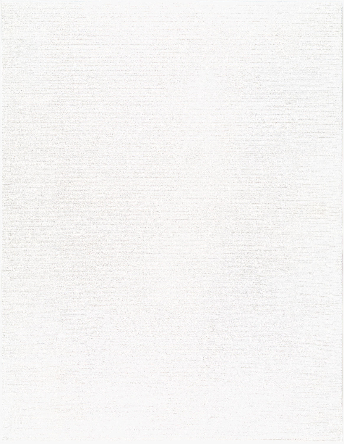 A solid white rectangular area rug with a uniformly clean surface and a subtle horizontal woven texture visible across the entire pile. The color is a bright, near-pure white with the faintest warm cream undertone visible in the texture's shadow lines. The pile is low and even at approximately 0.35 inches, giving the surface a smooth, refined appearance without being completely flat. Edges appear cleanly bound with no fringe or tassels. The overall impression is of a crisp, minimalist rug that reads as a pure white canvas from a distance, with quiet textural depth visible up close.