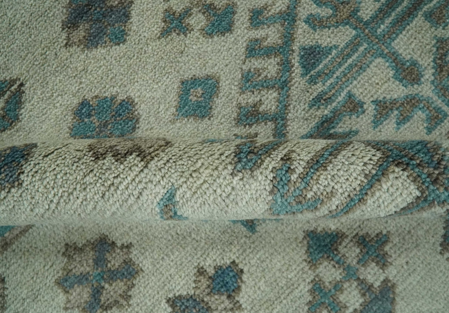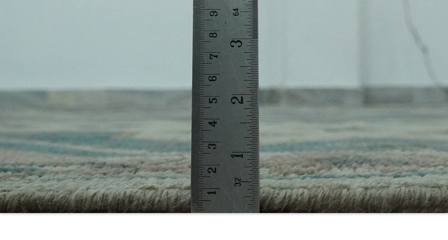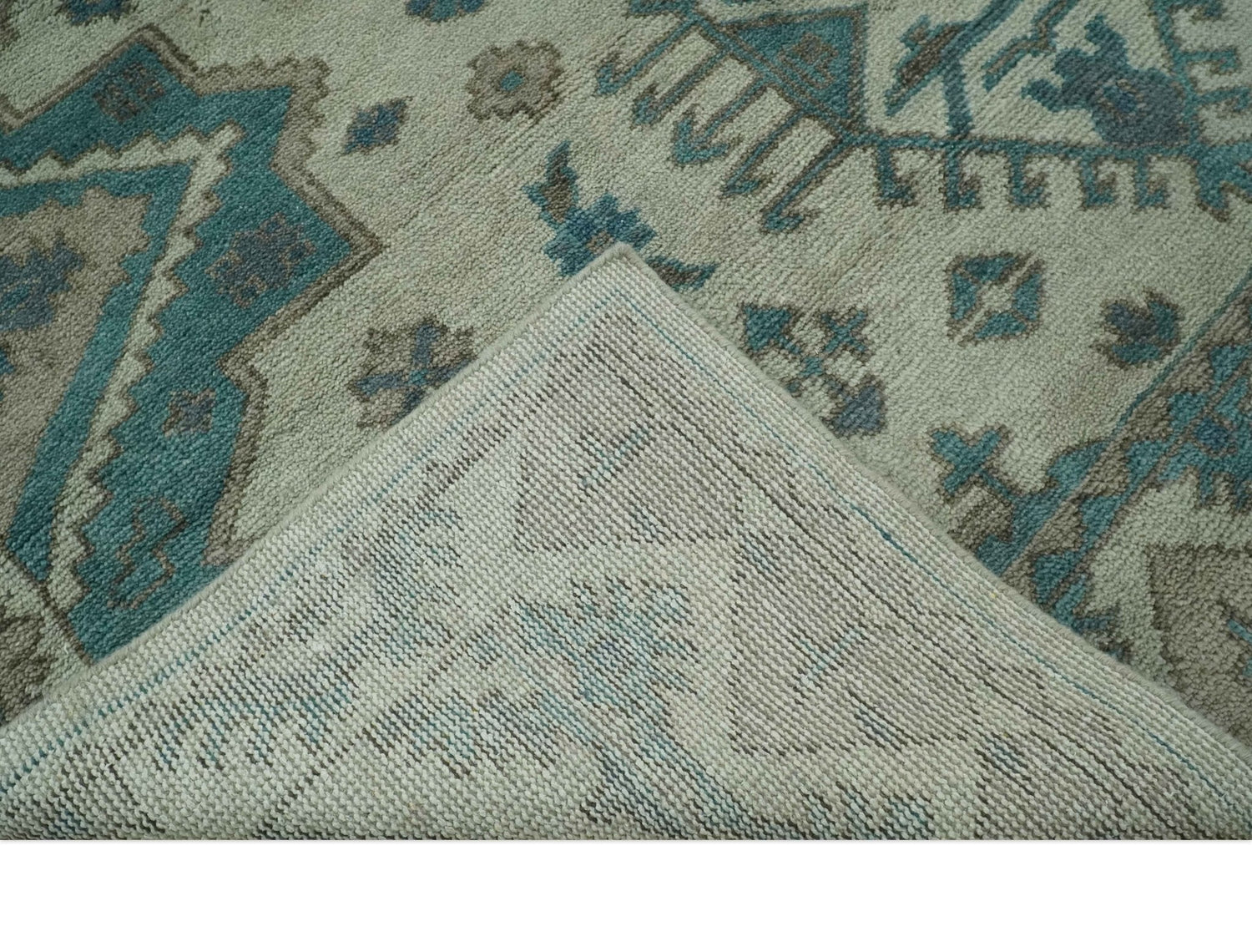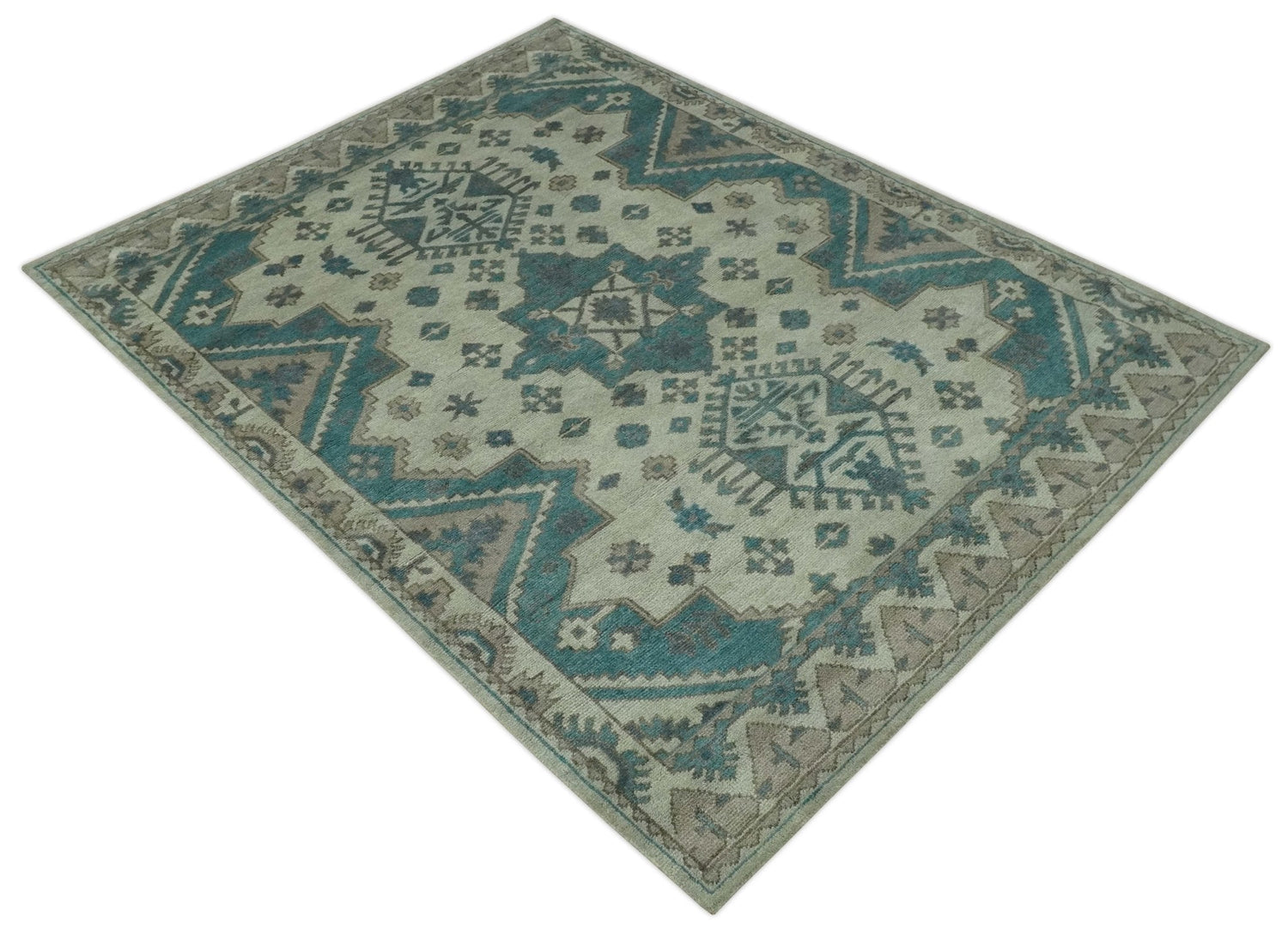 Light green, Teal and Charcoal Traditional Hand Knotted Custom Made wool Area Rug