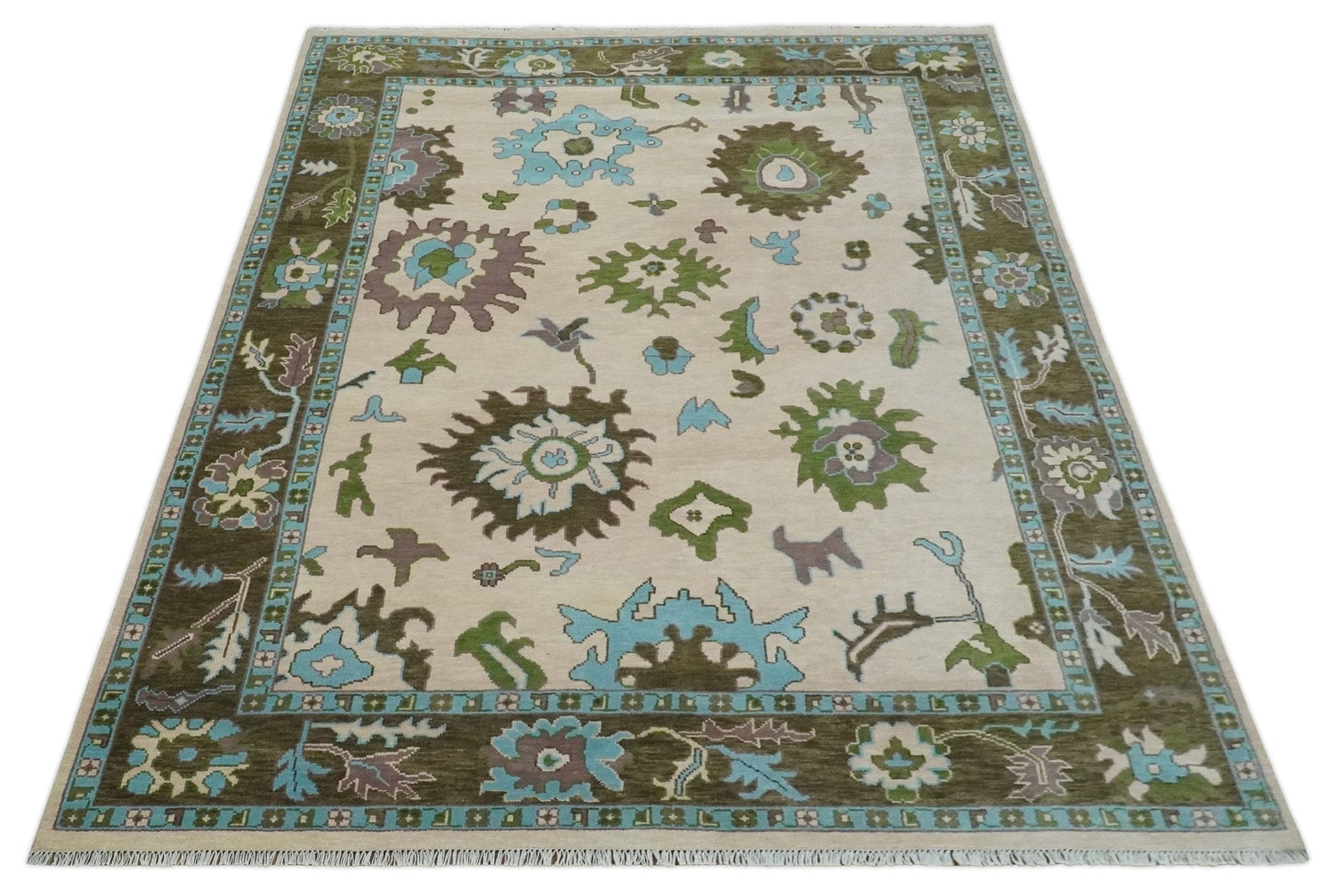 Light Peach, Green and Aqua Hand knotted Traditional Oushak Multi size wool Area Rug