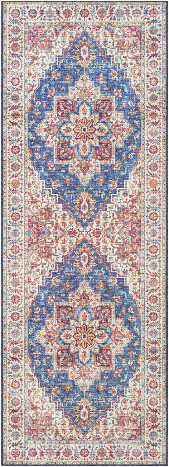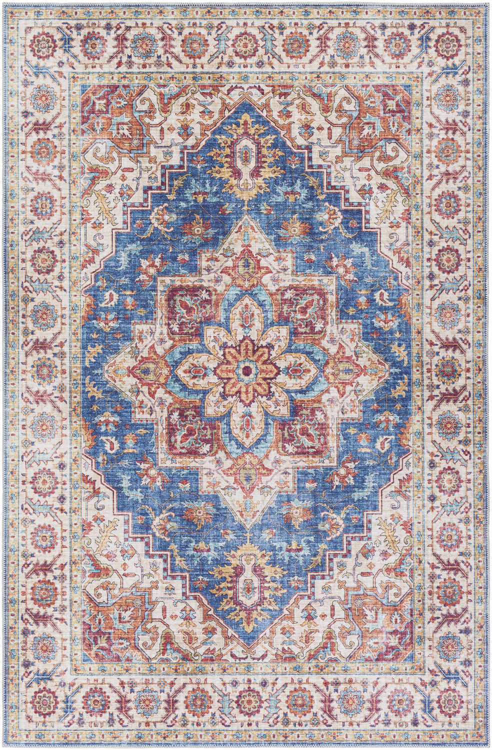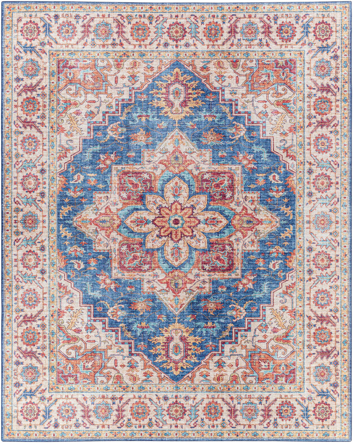 Introducing the Kapaa Blue Medallion Area Rug, an updated traditional masterpiece that infuses timeless elegance into any space. This high-traffic friendly rug is made of durable polyester and constructed through a meticulous machine-woven process, making it a reliable addition to your home. Its no-pile feature ensures easy maintenance and longevity, while its unique design adds a touch of sophistication to your decor. To enhance its lifespan and provide added stability, we recommend using this rug with a rug pad. The Kapaa Blue Medallion Rug rug is also easy to maintain - simply spot clean with mild detergent and watch it retain its charm for years!