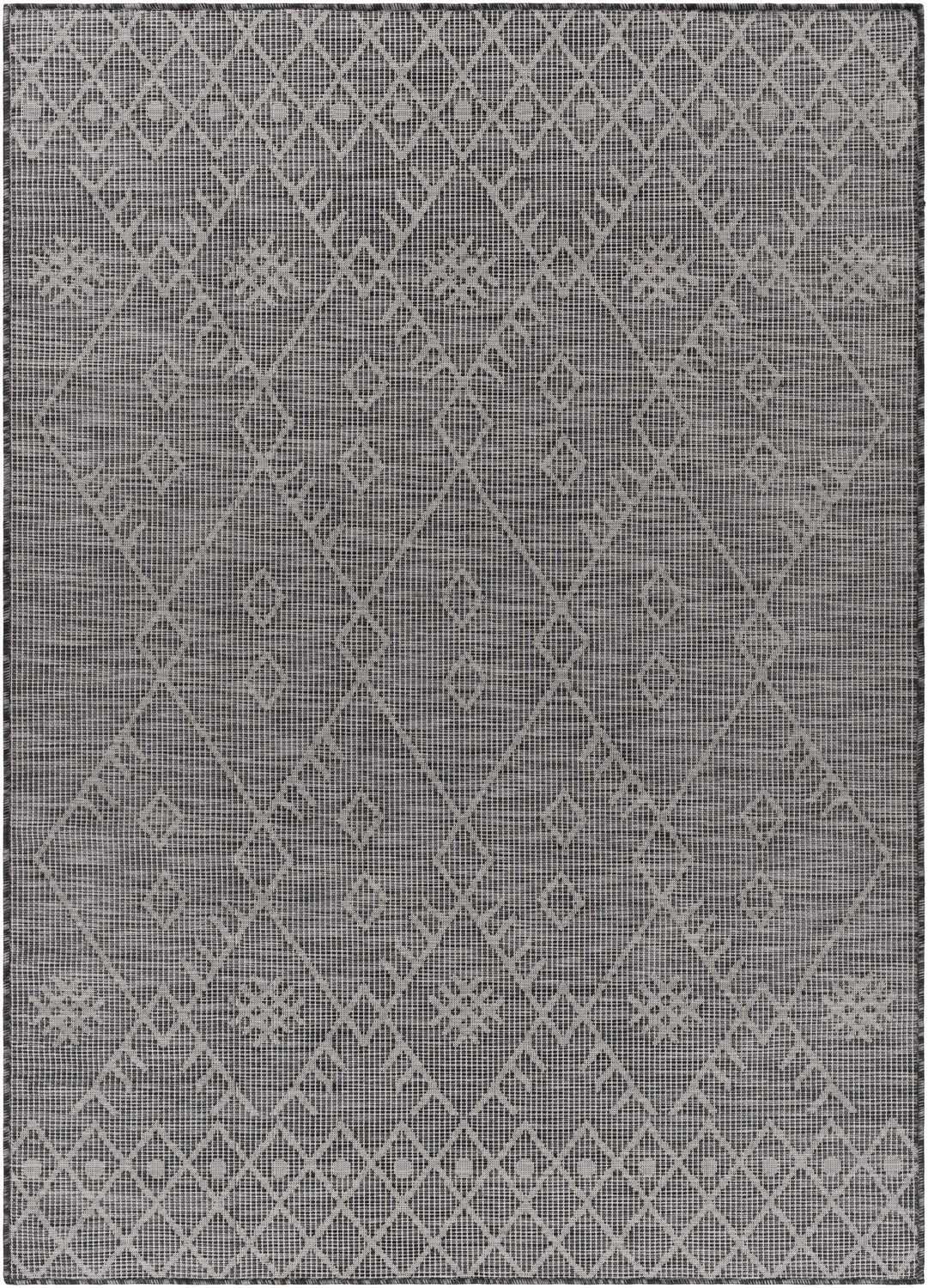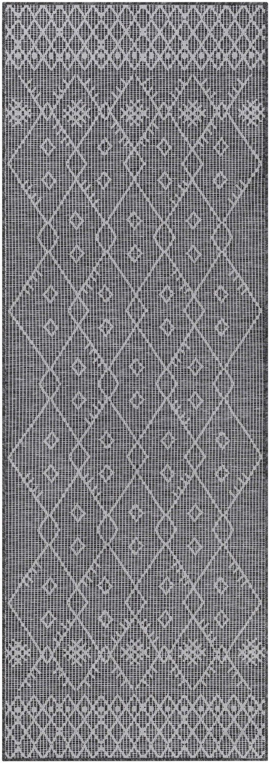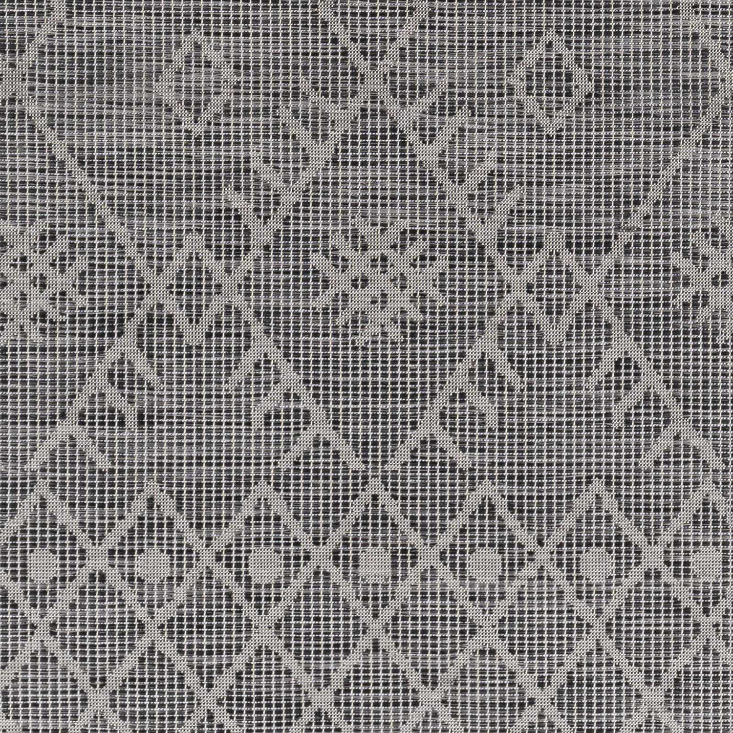 Elevate your space with the sophisticated style of the Lorena Charcoal Flatweave Trellis Carpet area rug. This beautiful bohemian global-inspired design is crafted from durable polypropylene for a look that lasts. Machine woven in Turkey, this no pile rug is perfect for high traffic areas and outdoor use. Plus, it's easy to maintain ? simply spot clean with mild detergent as needed. Add an extra layer of comfort and protection beneath your feet by pairing with a rug pad (sold separately).
