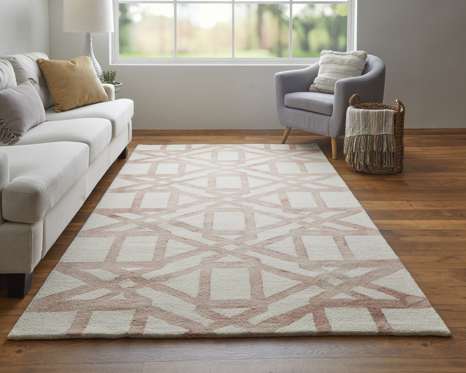 When selecting a living room rug, choose one that anchors your furniture by either placing all the legs on the rug or just the front legs, which helps define the seating area and enhances the room’s acoustics.