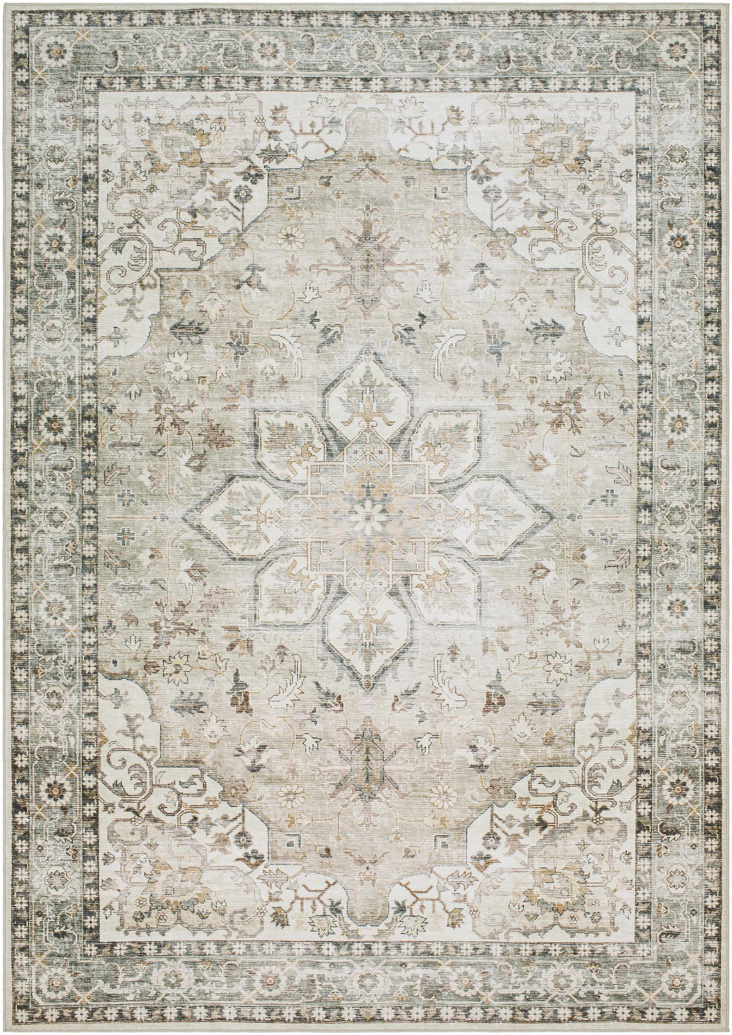 Introducing the Lotan Sage Medallion Washable Area Rug, a stunning and stylish addition to any room. This versatile machine-woven piece is crafted from durable polyester with a low pile making it great for high traffic areas. Featuring an elegant design that will bring sophistication to your home decor, this rug is also conveniently machine washable for easy care and maintenance. For best results, use with a rug pad (not included) to ensure maximum stability and comfort. Transform your space today with this beautiful Lotan Sage Medallion Washable Area Rug!