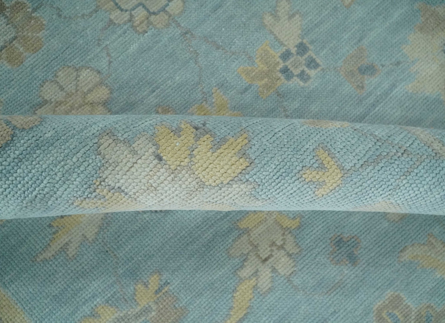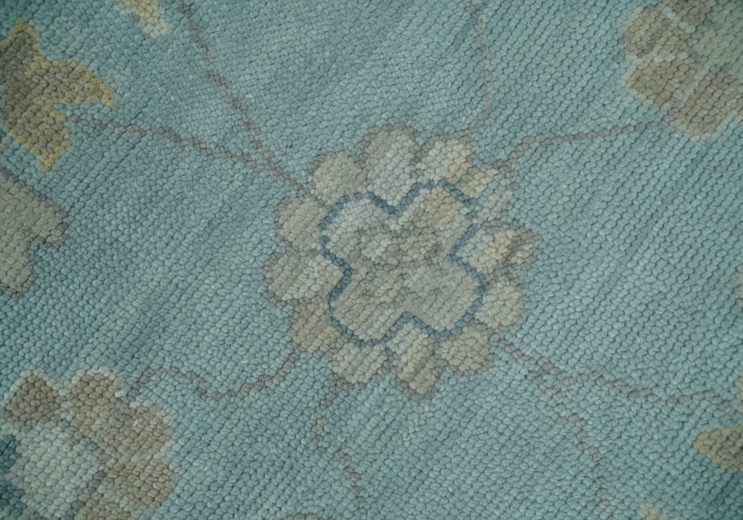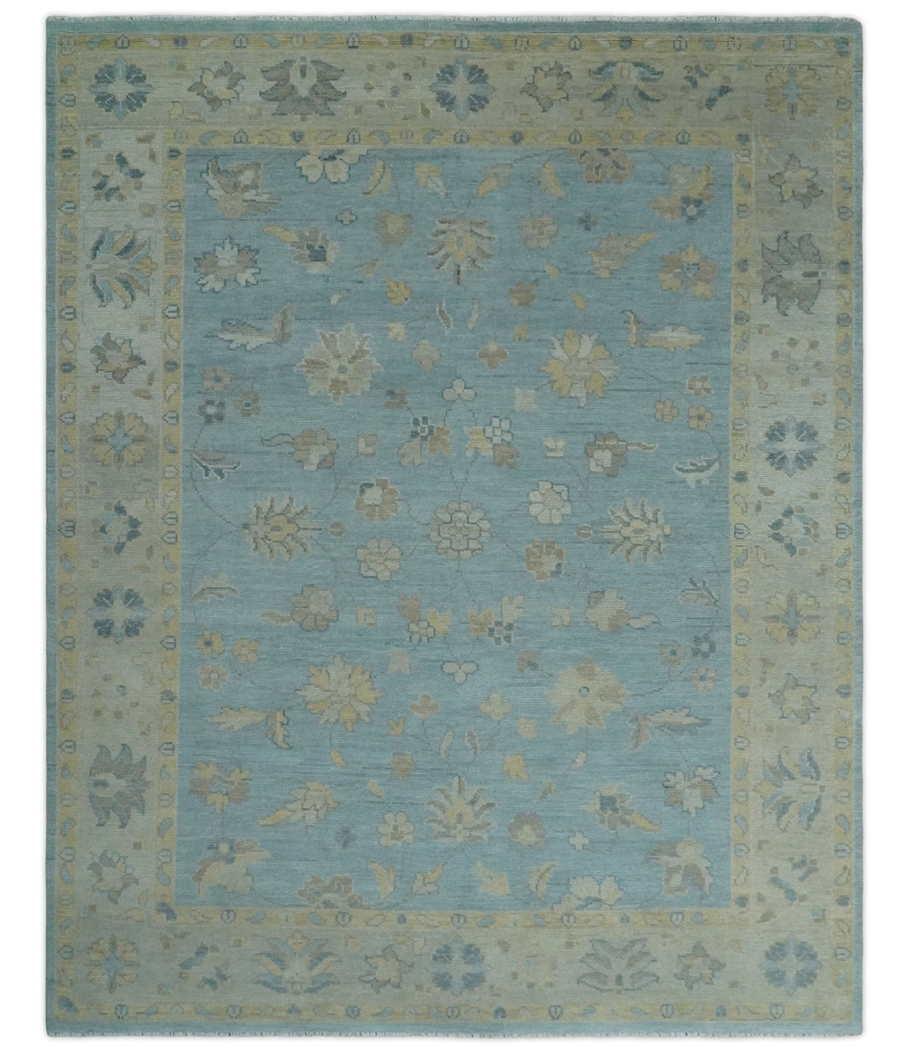 Made to Order Aqua, Beige and Ivory Hand Knotted Floral Oushak Wool Rug