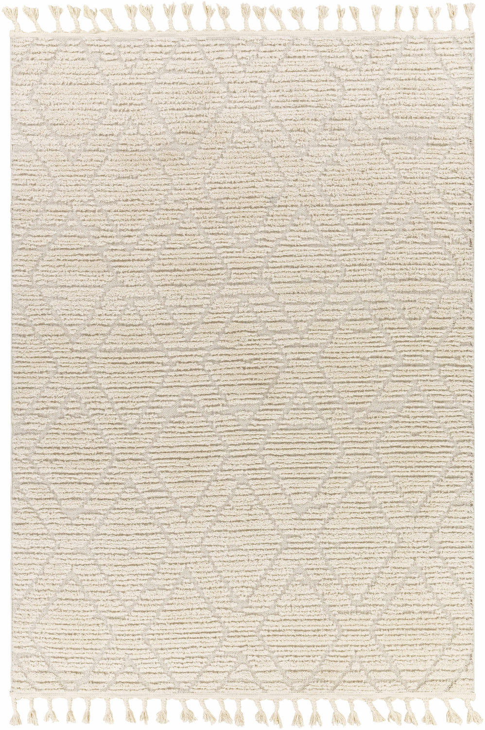 Soft cream tones, a subtle Moroccan diamond pattern, and boho fringe — the Maduao brings effortless warmth to any neutral space.
