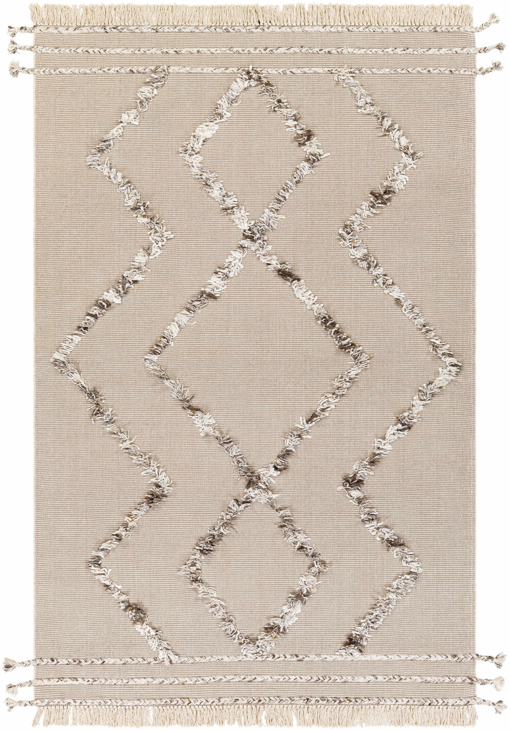 The Marleston Taupe High-Low Rug Collection features compelling global inspired designs brimming with elegance and grace! The perfect addition for any home, these pieces will add eclectic charm to any room! The meticulously woven construction of these pieces boasts durability and will provide natural charm into your decor space. Made with Cotton, Polyester in India, and has No Pile.