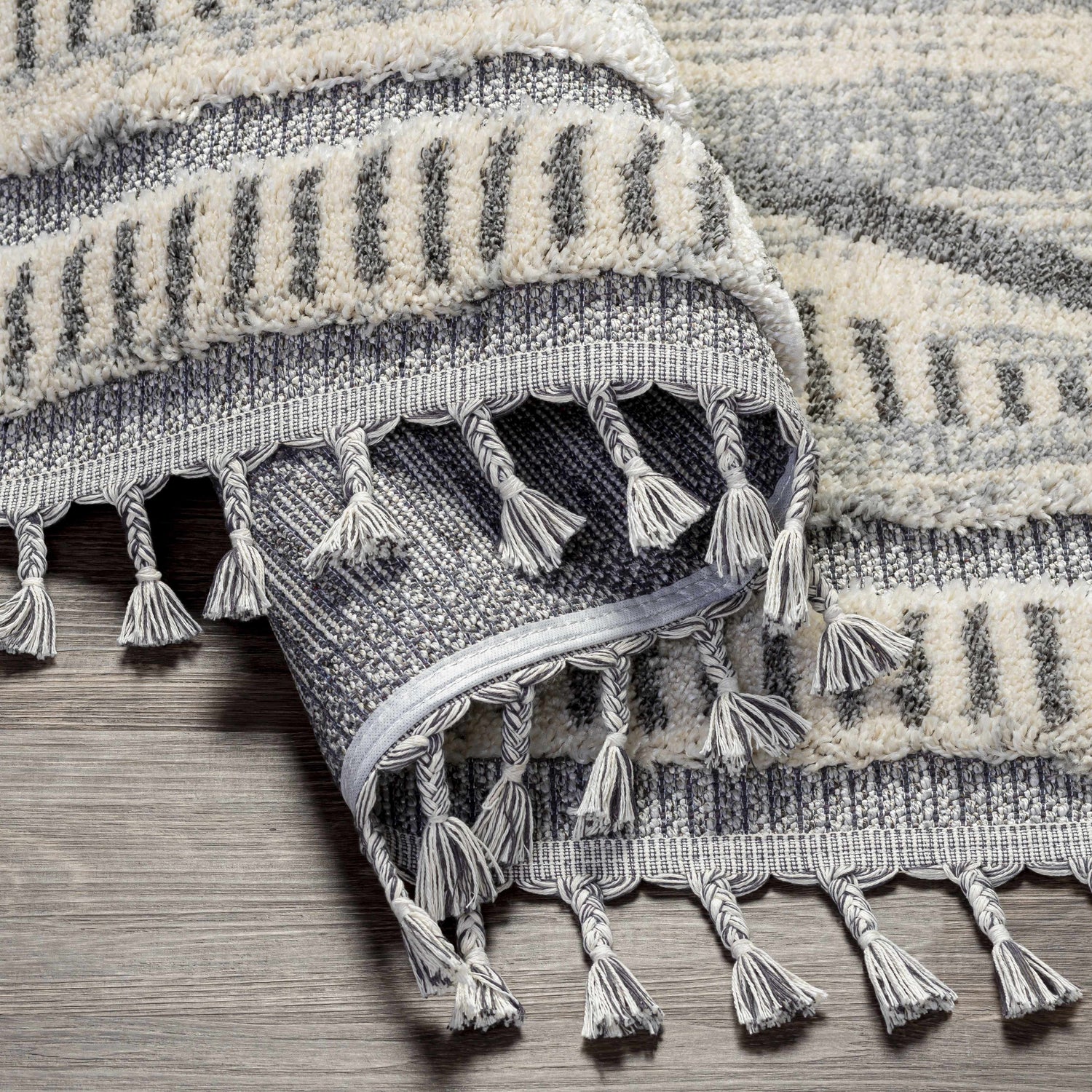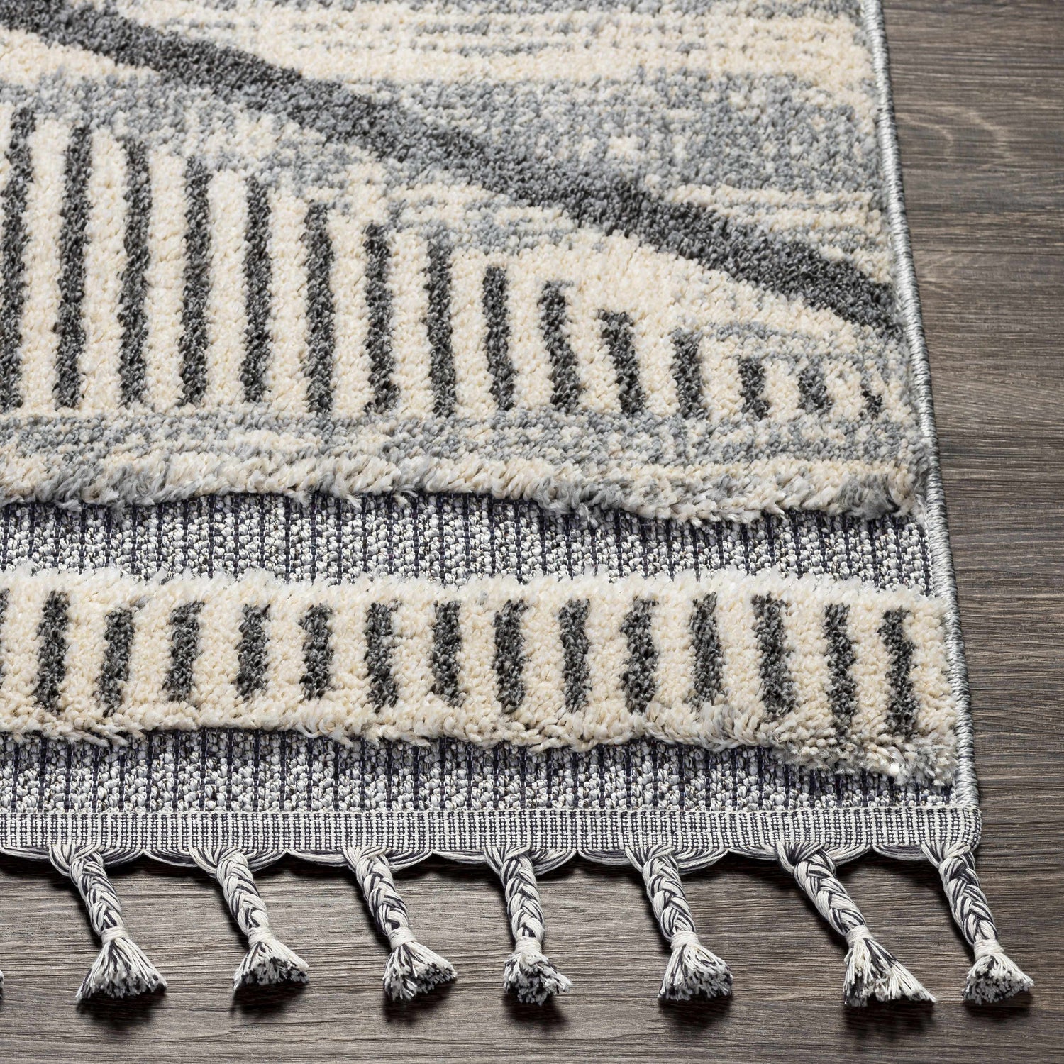 The Maydolong Area Rug is the perfect addition to any room in your home. Boasting a bold bohemian global style, this statement piece features an eye-catching fringe detail that adds depth and texture to your space. Made from soft and durable polypropylene fibers, it is machine woven with a high pile for extra cushioning and comfort. For best results, use with a rug pad for added stability and protection against wear. This stylish rug is sure to bring warmth, charm, and character into any room while also providing easy care instructions - simply spot clean with mild detergent when needed.