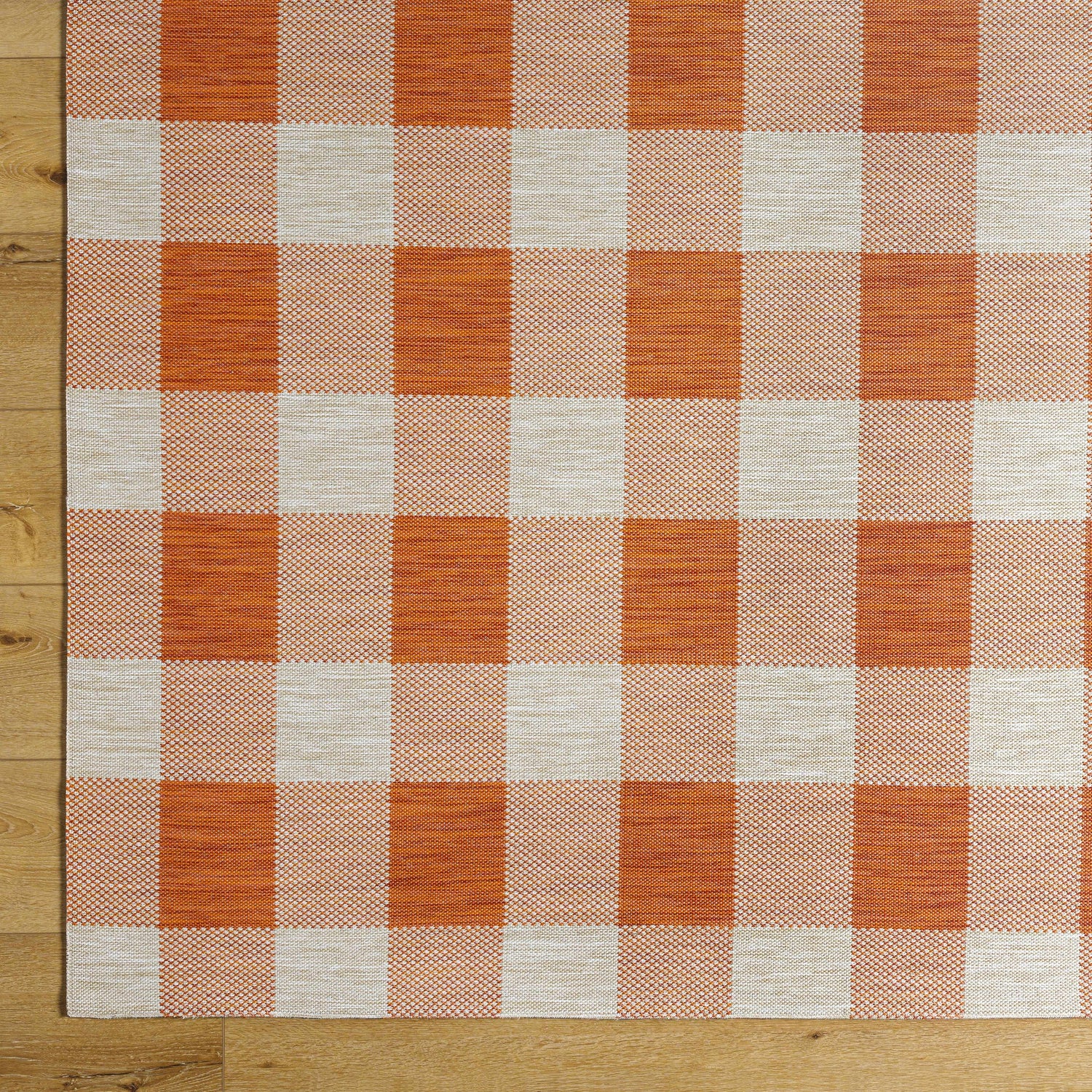The Meris Orange Plaid Area Rug is the perfect way to add a touch of beauty and style to any space. This rug is made in Turkey with high quality polypropylene for an incredibly soft and durable feel that can handle high traffic areas without worrying about wear or tear. It features a no-pile design, making it ideal for outdoor use as well. For added protection, we recommend using a rug pad underneath. To clean, simply hose off with water and hang to dry. With the Meris Orange Plaid Area Rug, you can create a beautiful atmosphere in any room!