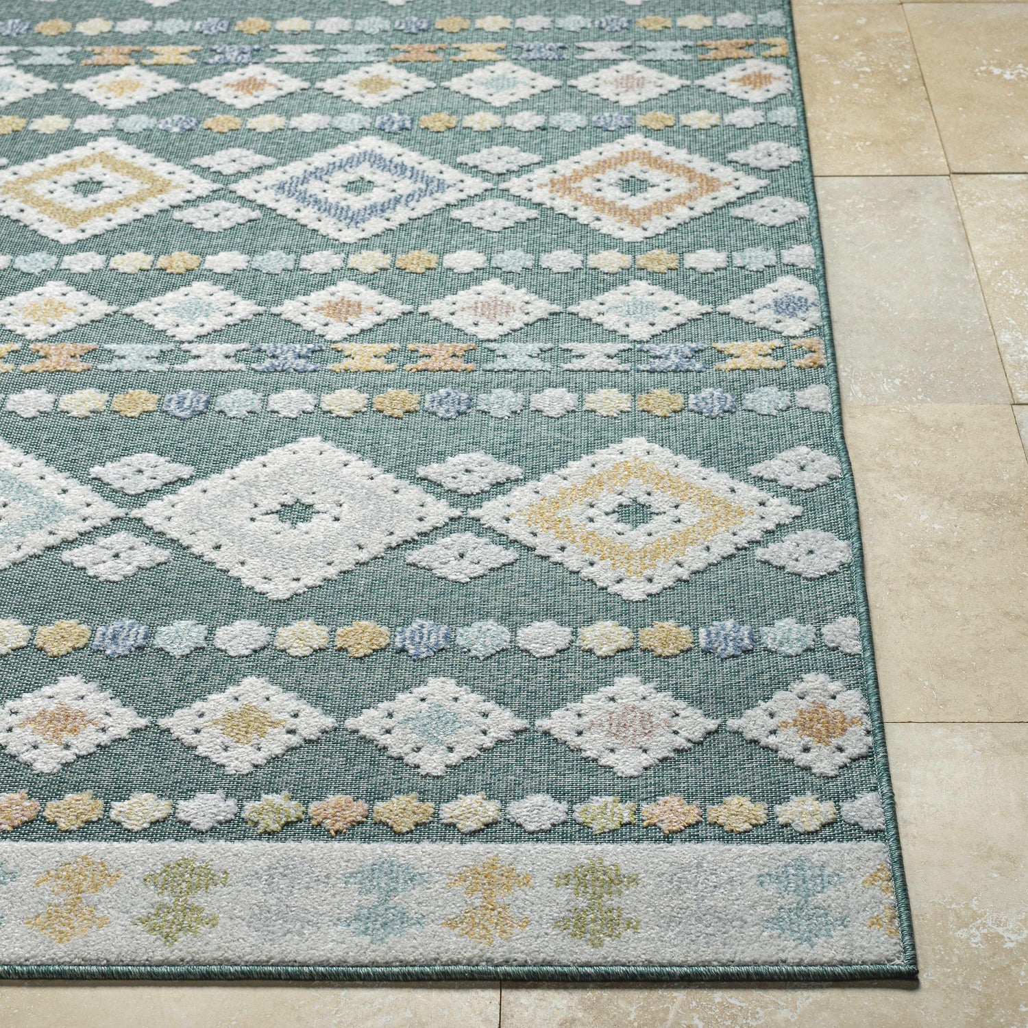 Discover a touch of elegance with the Metta Area Rug. Manufactured in Turkey, this machine-woven piece is made of robust polypropylene, making it suitable for high-traffic areas. It boasts an enchanting style that seamlessly blends into any space and has a medium pile for comfortable underfoot feel. Plus, it's outdoor safe! Extend your living area to the patio or garden while maintaining the same level of sophistication. For longevity, we recommend using it with a rug pad to prevent slipping and sliding. And when it comes to cleaning? Simply hose off with water and hang to dry for an effortless upkeep.