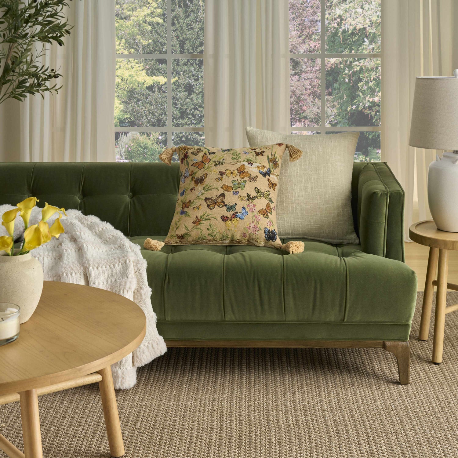 Mina Victory Vintage Pillow Butterflies Blush Indoor Throw Pillow