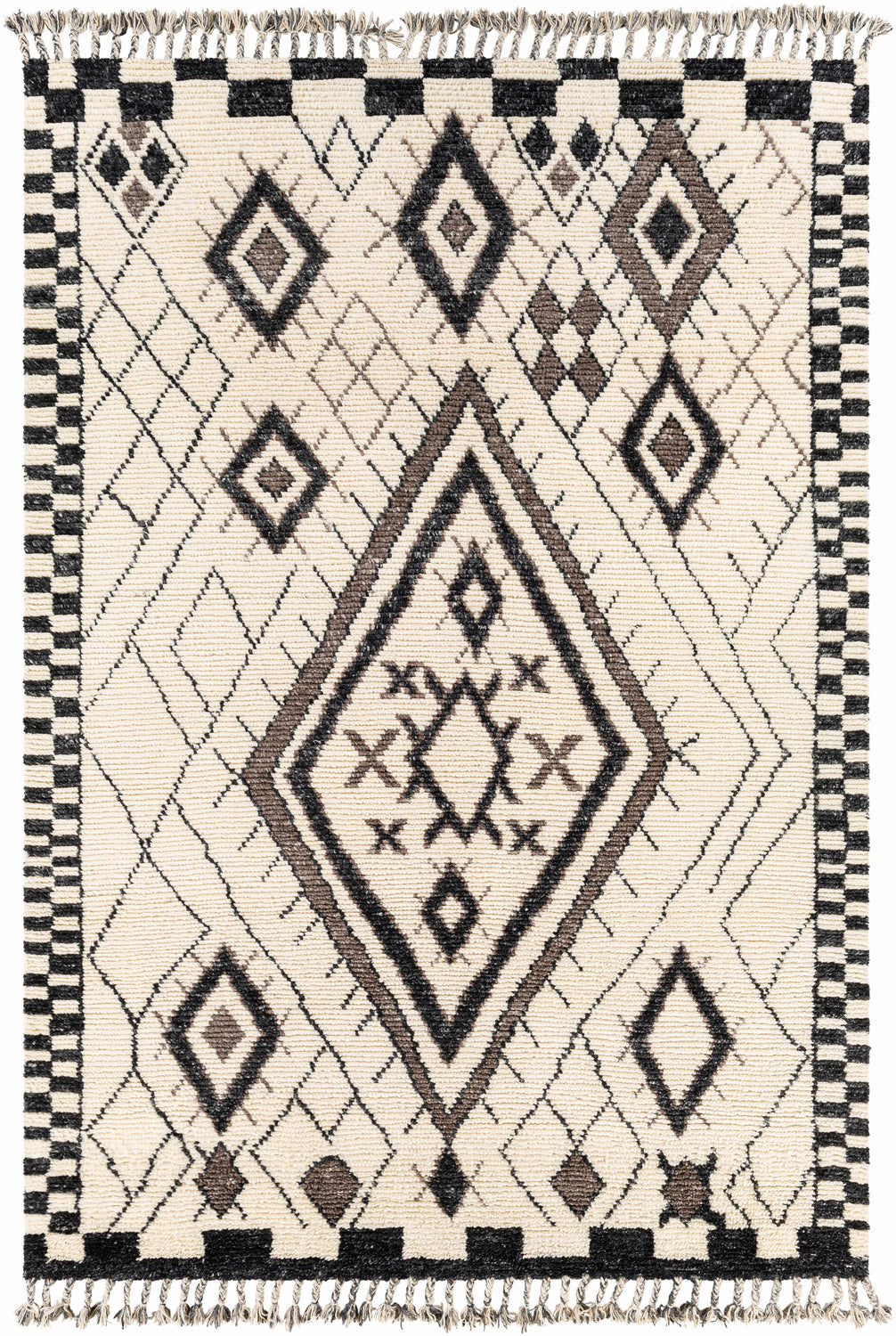 - Bold Moroccan Berber diamond medallion pattern in cream & black