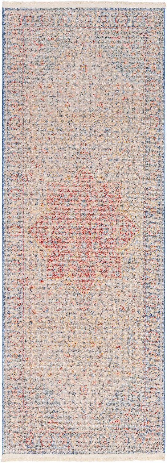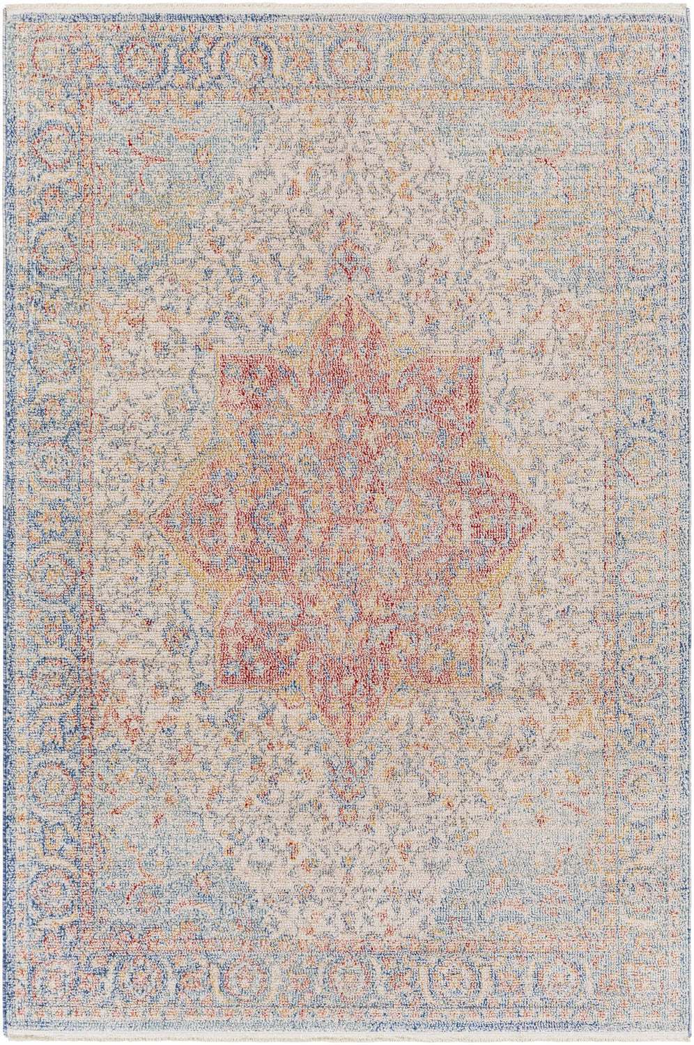 This area rug is sure to add a traditional touch of style to your home. Machine-woven in Turkey, this polyester rug features medium pile and is designed for high traffic areas. Fringe detailing adds a unique finishing touch. We recommend using a rug pad with this piece for added stability and comfort. To maintain its beautiful look, professional cleaning is recommended.
