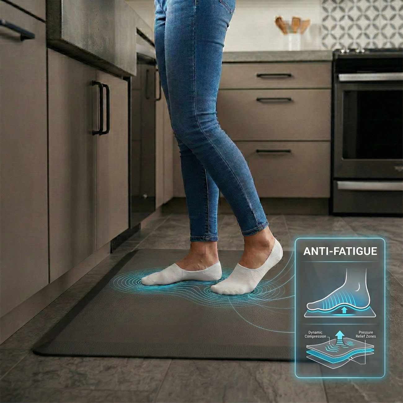 - Reduces the fatigue of your feet caused by standing