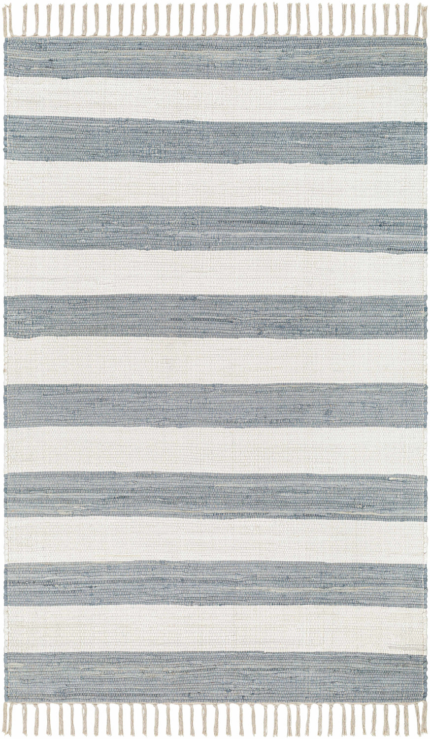 This Moby Gray Blue Area Rug is the perfect way to transform any room in your home. The handmade construction and 100% cotton material creates an eye-catching design that will last through the years. This no pile, flat weave style was made in India and is sure to add a unique flair to your space. For best results, pair this Moby Gray Blue Area Rug with a rug pad (sold separately). The perfect blend of style and durability makes this piece an ideal choice for any room.