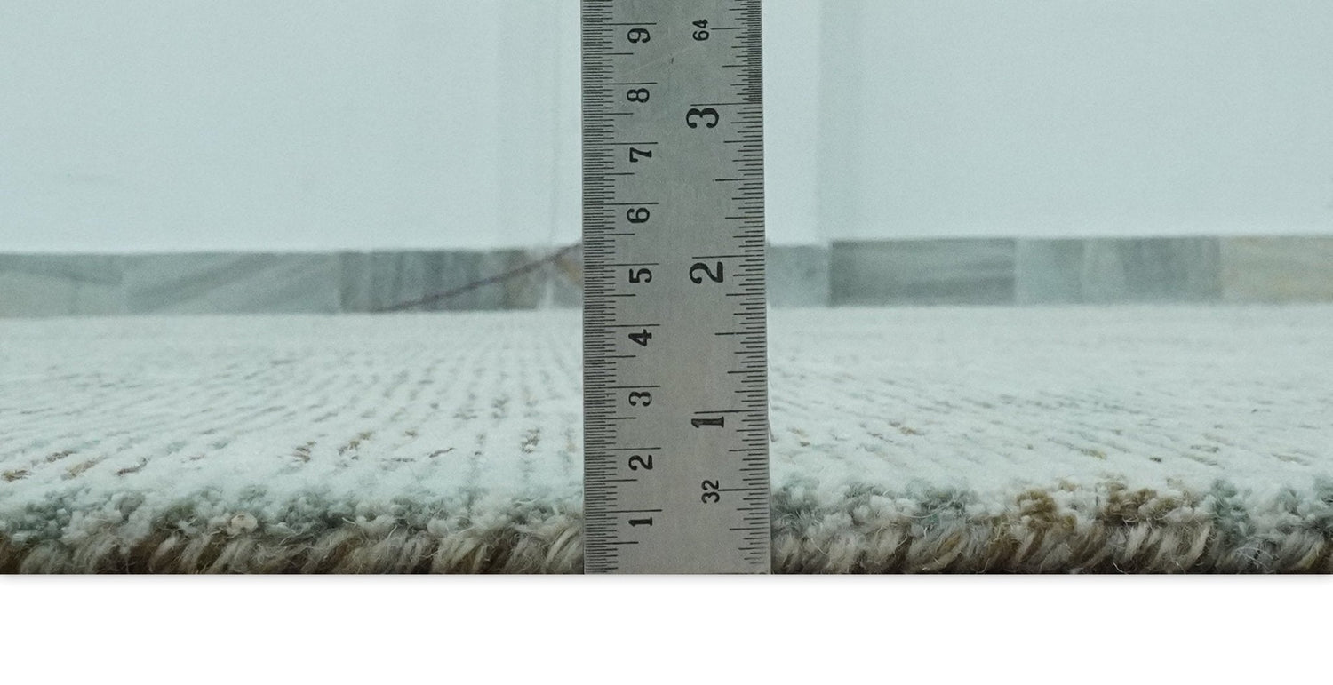 This modern abstract rug in shades of teal, olive, and ivory is hand-tufted with high-quality wool for a luxurious finish. Available in multiple sizes, this rug adds a touch of contemporary style to any room. Its soft texture provides comfort for your feet while its durable construction ensures long-lasting use.
