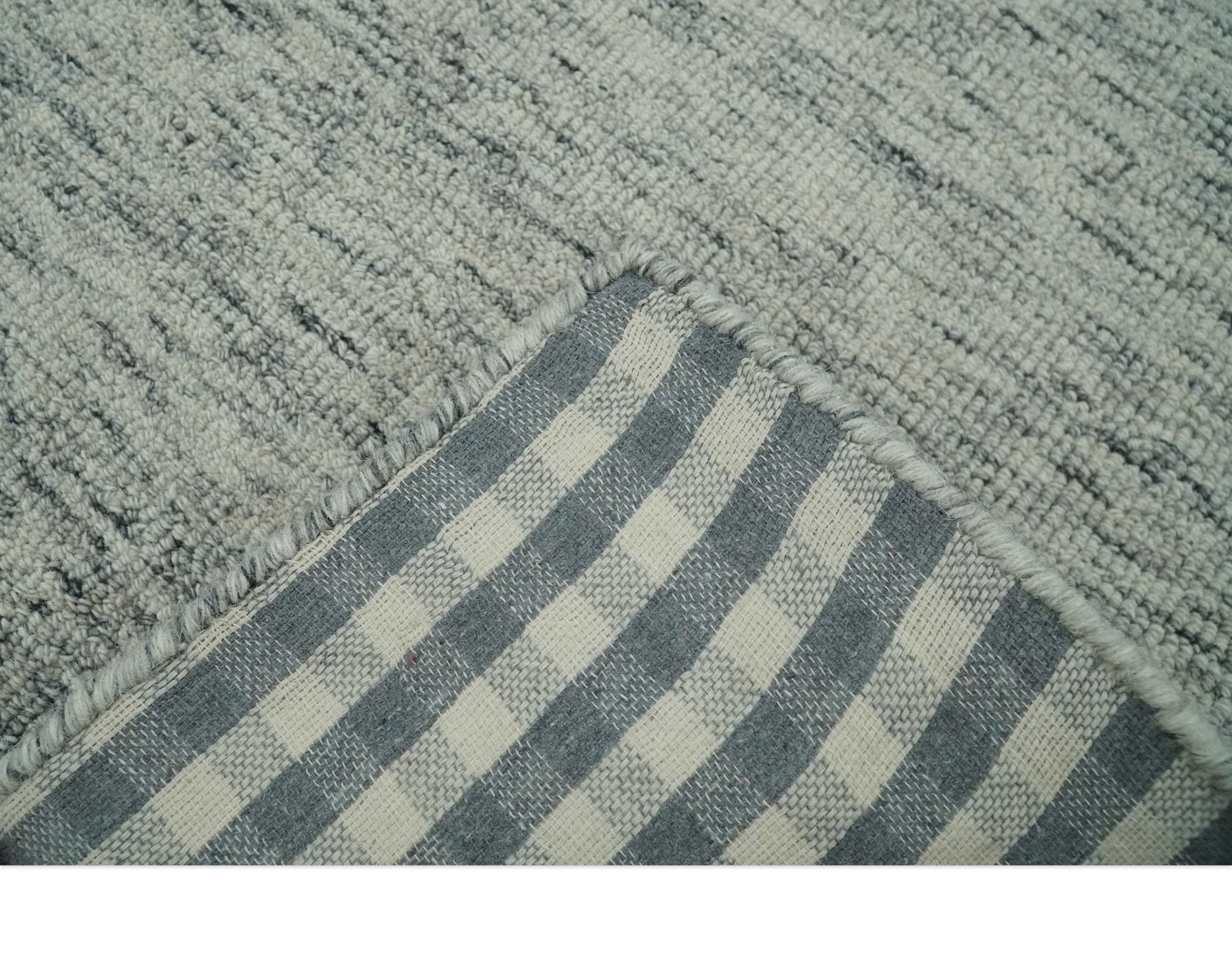 Modern Beige and Charcoal Solid Shaded Hand Tufted Natural Wool Area Rug