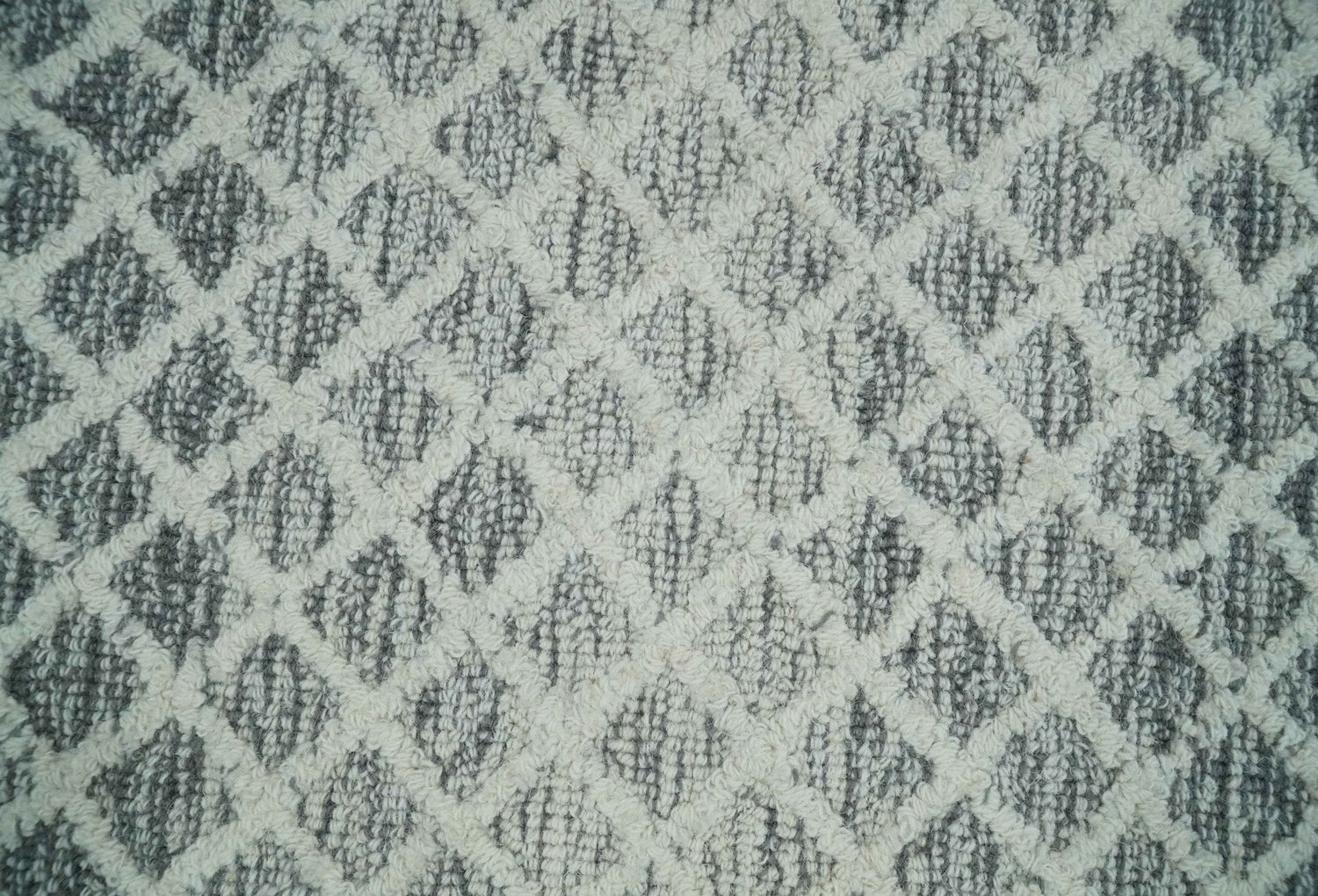 Modern Geometric Ivory and Charcoal Abstract Hand Tufted Natural Wool Multi Size Area Rug