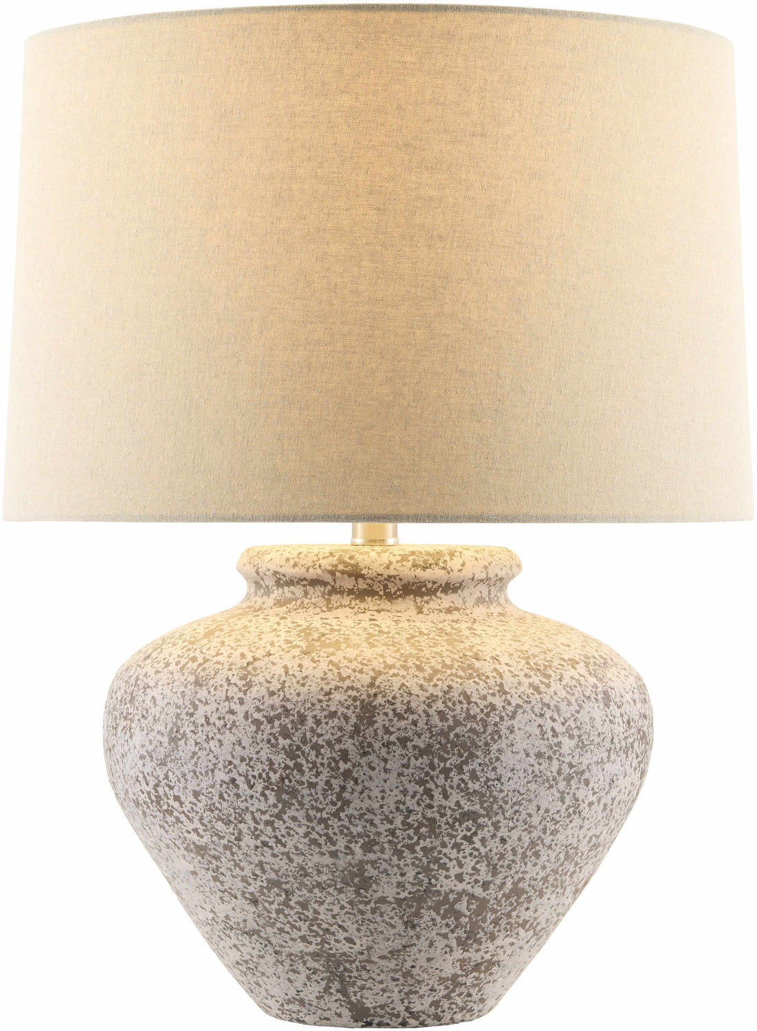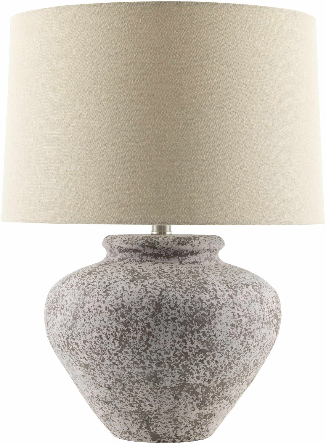 | Material: | Body: Ceramic / Shade (Outside): Linen, Linen / Shade (Inside): Linen, Linen / Finial: Iron |